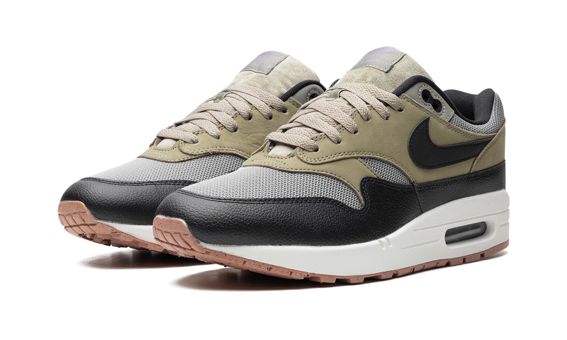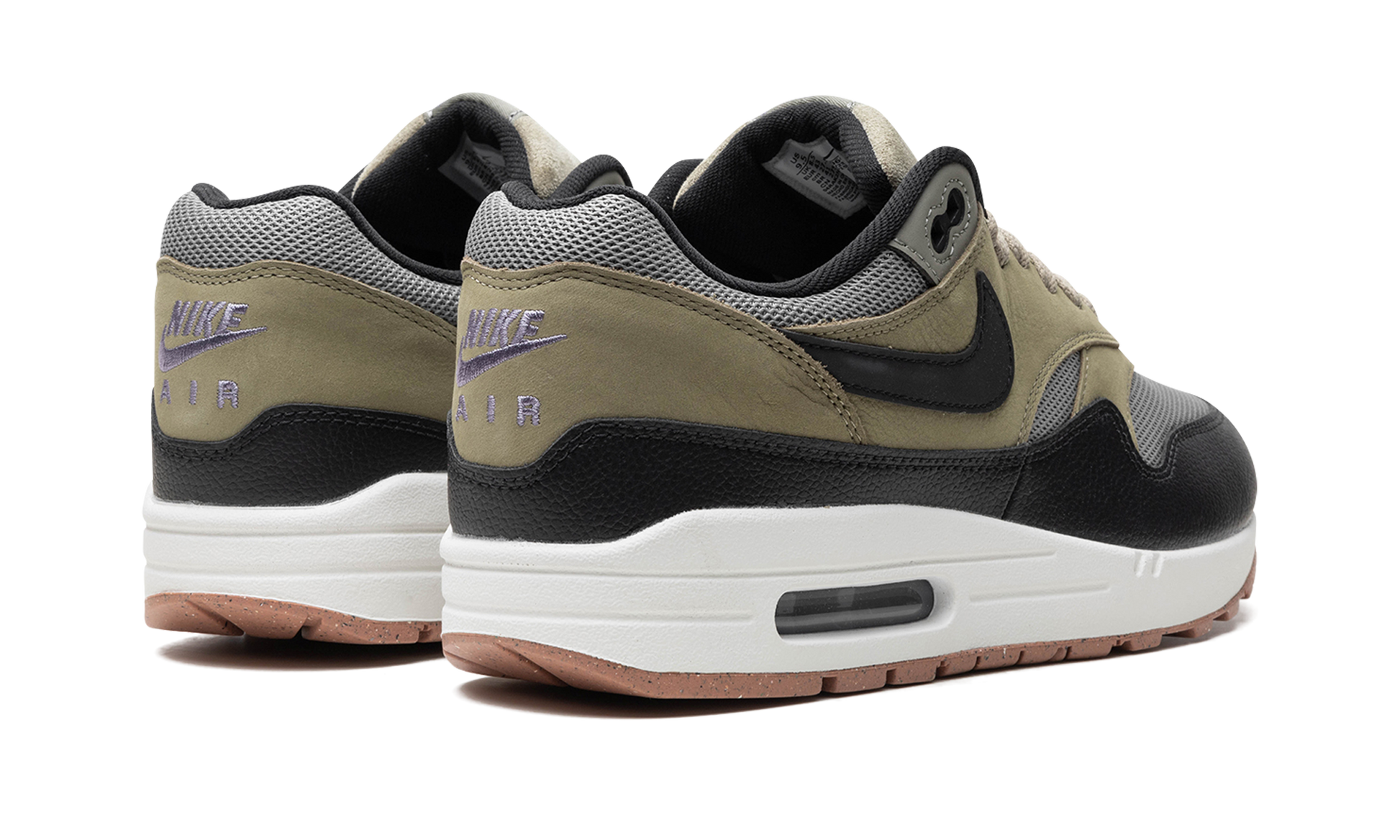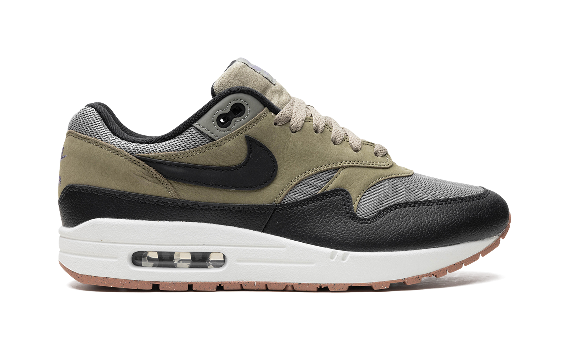 The Nike Air Max 1 "Dark Stucco" is an earth tone colorway of the retro performance running shoe. From Nike’s Spring 2024 footwear collection, the “Dark Stucco” Air Max 1 features a Dark Stucco mesh base and a Neutral Olive leather overlays on the midfoot and heel. Contrasting black leather appears on the mudguard and Swoosh. Classic Air Max 1 branding elements include “Nike Air” embroidery on the heel and “Air Max” detailing on the tongue tag. A visible Air unit appears in the heel of the white foam midsole. Underfoot, the gum rubber outsole is made from Nike’s recycled Grind material. Release date: January 25, 2024 Dark Stucco