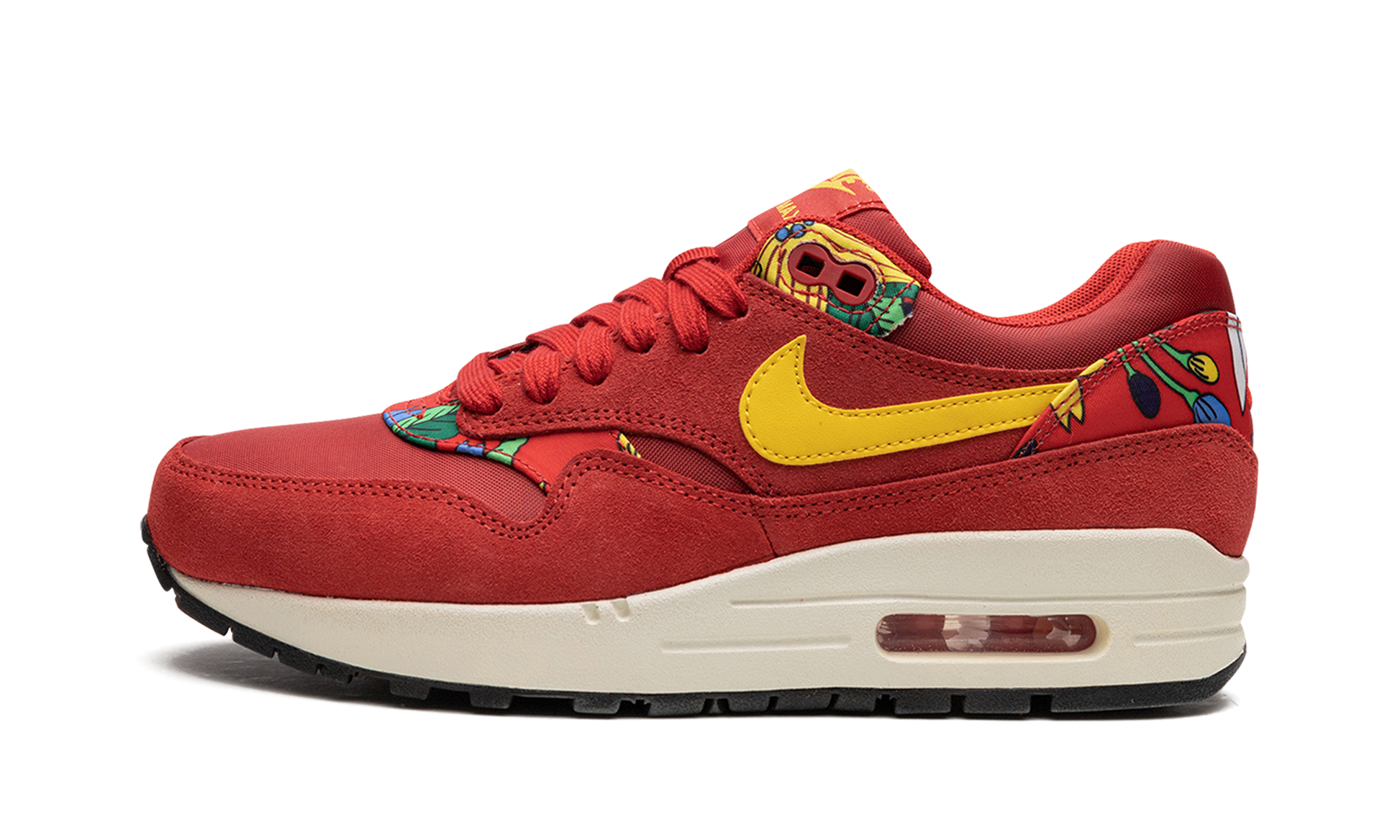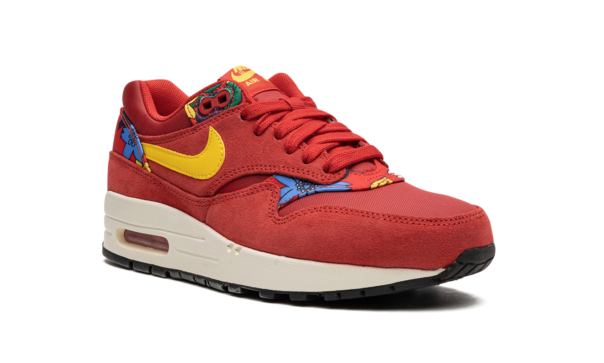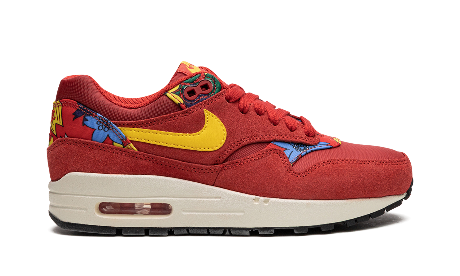 In 2015 Nike Sportswear brought back the classic print of the Nike Air Aloha, a vintage running silhouette created specially for the 1984 Honolulu Marathon that featured a Hawaiian floral print. Among the sneakers to get the "Aloha" makeover in 2015 was the Air Max 1, presented here in the red colorway. Aloha Pack