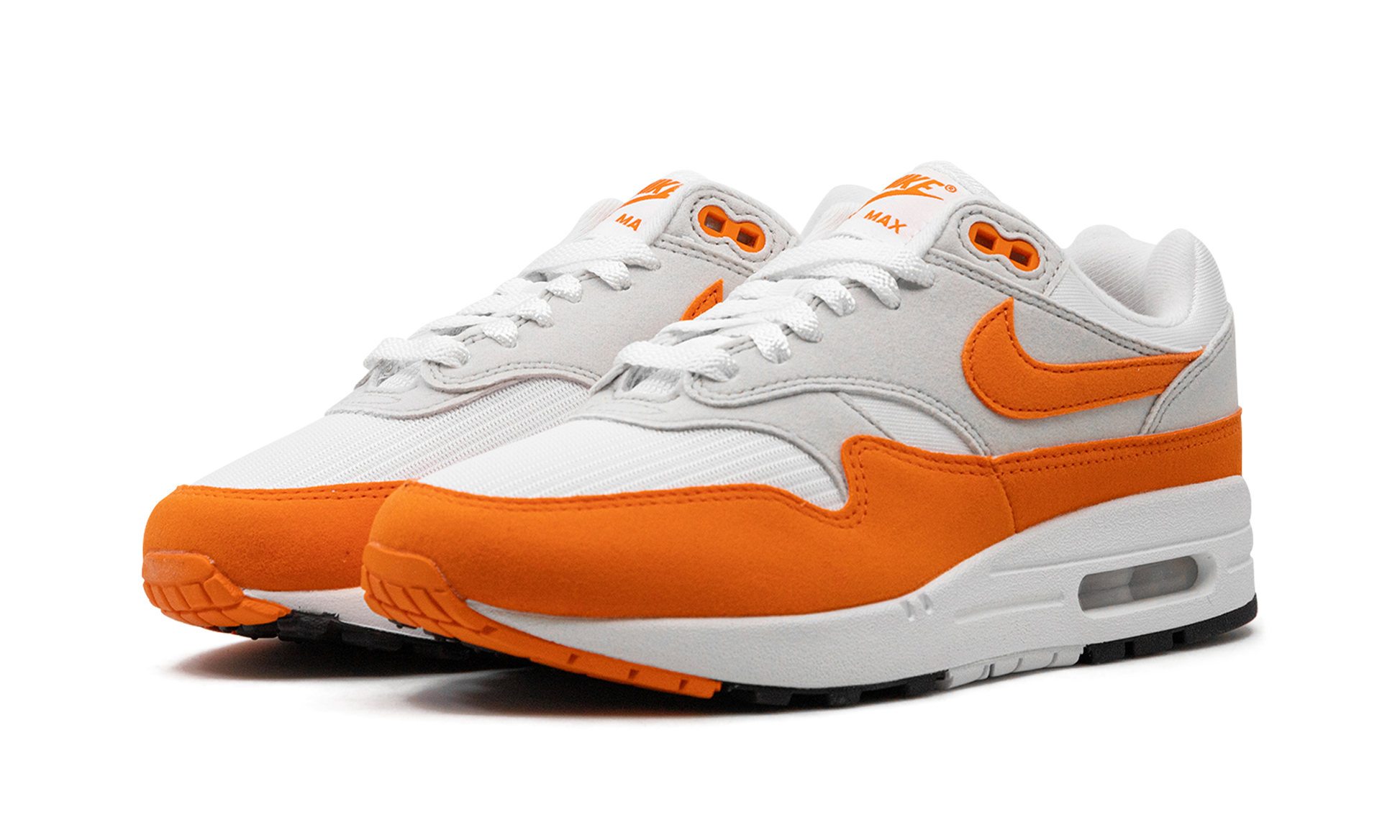 The Women’s Nike Air Max 1 "Safety Orange" is a women’s-exclusive colorway of the retro running and lifestyle shoe with fiery orange accents. The “Safety Orange” AM1 has blazing orange features that draw attention. More specifically, the shoe has a white mesh base and grey felt overlays. A Safety Orange mudguard matches the color of the “Nike Air” embroidery on the heel, the Swoosh on the side, and the “Nike Air Max” detailing on the tongue. A visible Air unit in the heel of the midsole completes the look. Release date: October 26, 2023 Safety Orange