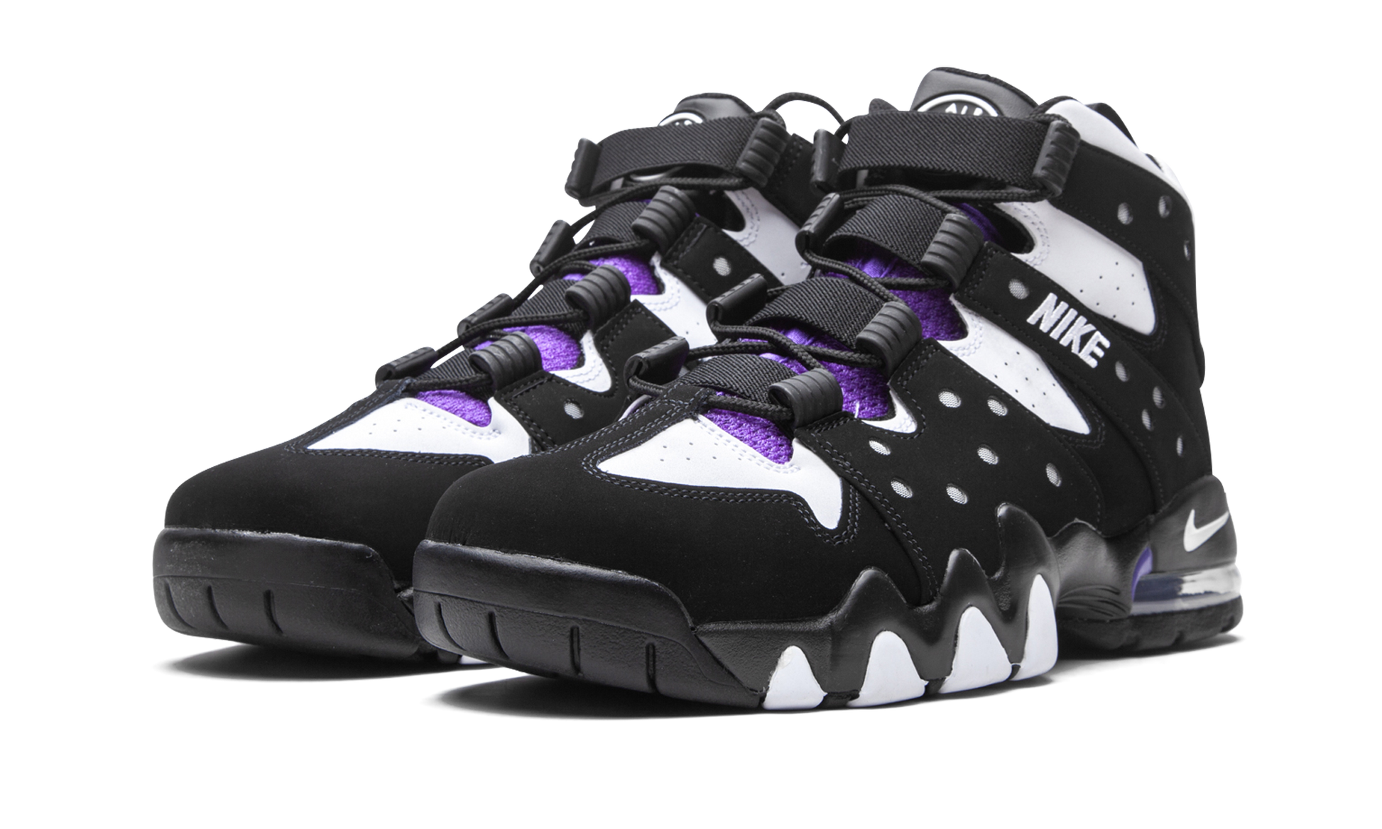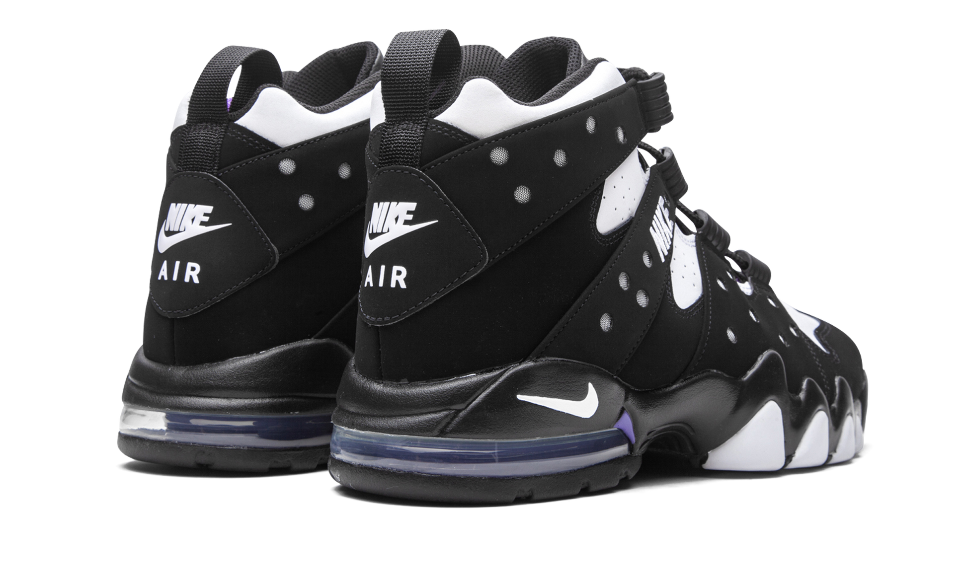 The Nike Air Max 2 CB ‘94 “2020 Retro” is an original colorway of Charles Barkley’s signature performance basketball shoe from the ‘90s. Quintessentially retro from a design standpoint, the Air Max 2 CB ‘94 returns in its true-to-original form for this Fall 2020 release. The design by Tinker Hatfield, which is inspired by the look of a straitjacket, features a split white leather and black synthetic nubuck design along the eyelets and midsole, respectively. White “Nike” embroidery appears on the midfoot harness that supports the lacing system. Additional details include purple accenting on the nylon tongue, white “Nike Air” embroidery on the heel, and a mini Swoosh on back of the midsole. A visible Air unit in the heel with purple accenting completes the look of this classic hoops silhouette from Nike Basketball. Black White Purple (2020/2025)