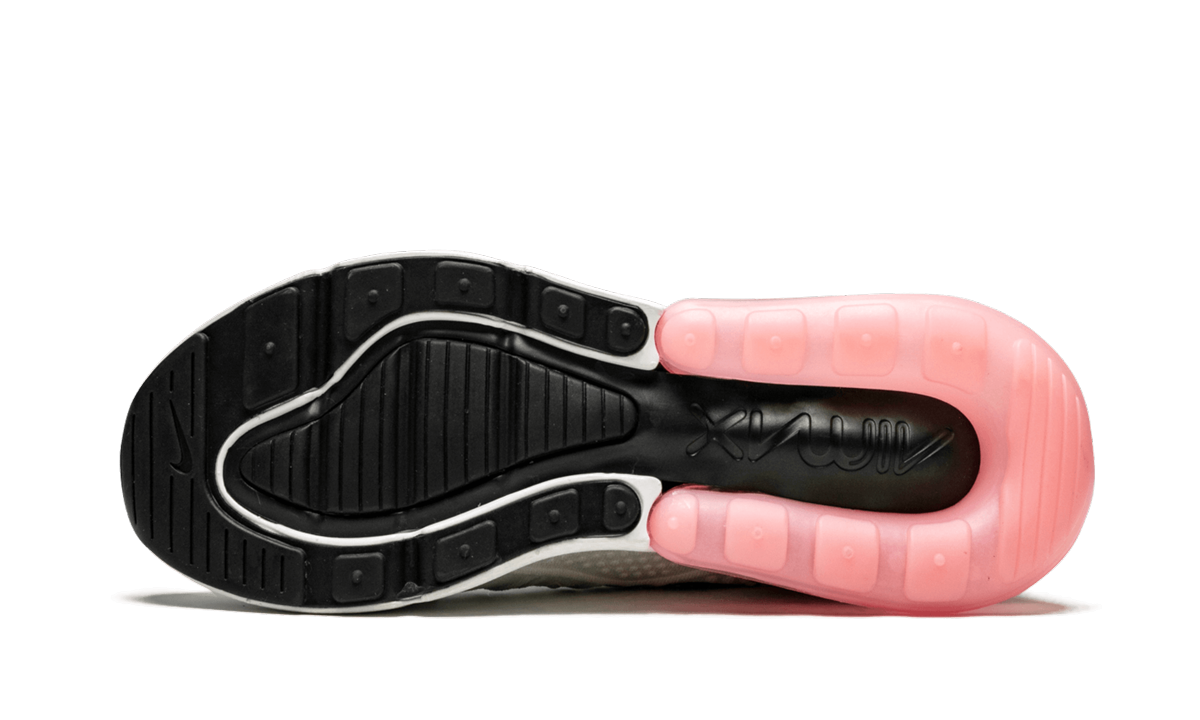 The Nike Air Max 270 Flyknit delivers a streamlined look. The lifestyle runner has a white and black color colorway with light pink accents, and the Nike Air Max 270 Flyknit is grounded nicely with a black and pink outsole. An airy Flyknit upper helps keep you cool when things get hot, and the distinct clear Air Max heel unit is Nike's largest yet. Other details include an exaggerated tongue top, a heritage logo, and a futuristic “AIR” on the heel. STORM PINK