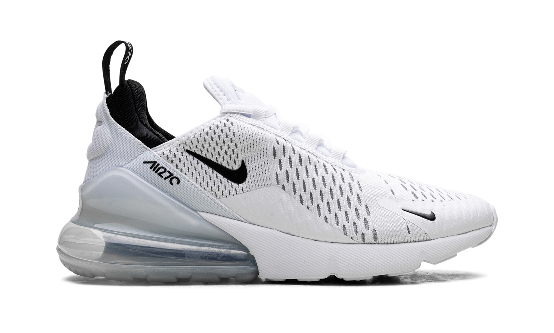 The Nike Air Max 270 strikes a bold stance with a classic color scheme. The Air Max 270 has a white engineered-mesh upper paired with a black inner bootie and small black hits of Nike branding throughout the sneaker. Nike’s largest-ever visible heel Air bag provides a super comfortable fit. The Nike Air Max 270 shoe's neoprene bootie construction sculpts to the foot’s natural shape and flexes with your foot. White/Black