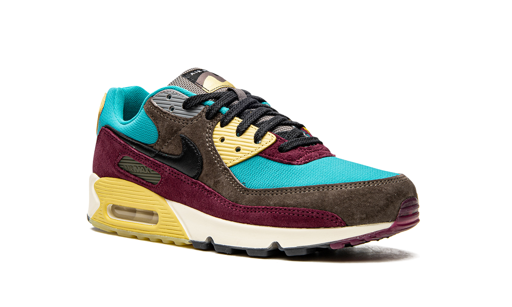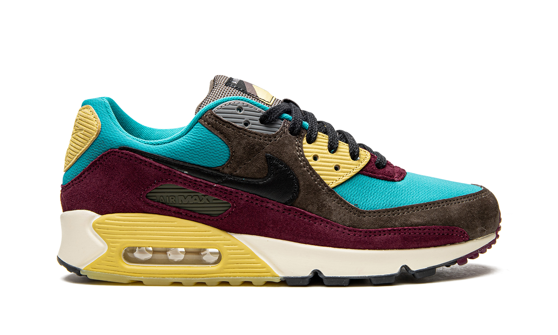The Nike Air Max 90 “Ridgerock” delivers a compelling colorway to this classic running shoe. This iconic Air Max design has indulged in a “Ridgerock/Black/Turbo Green/Saturn Gold” multi-color arrangement across various materials. A base layer of Turbo Green mesh and accents in bright yellow set contrast for much more muted tones of brown and burgundy suede as well as black leather Swooshes. The outsole features semi-translucent yellow, black, and burgundy rubber, adding to the unique colorway. Ridgerock