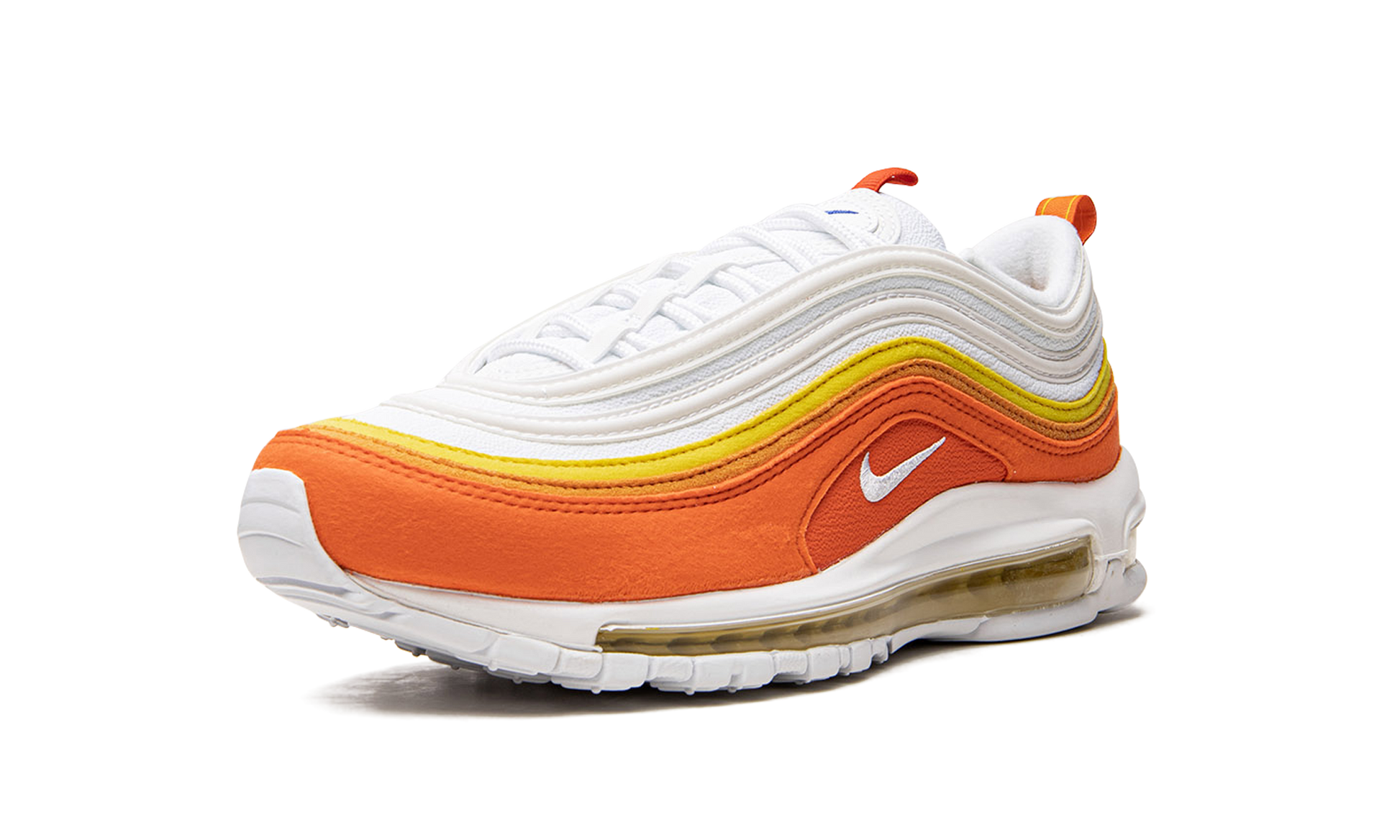 The Nike Air Max 97 “Athletic Club” is another eye-pleasing colorway of the retro running shoe that was released as part of Nike’s “Athletic Club” collection in 2022. Spanning several popular Nike models including the Air Force 1, Air Max 90, and more, the Air Max 97’s “Running Club” colorway features a white mesh base with tonal leather overlays. Yellow-to-orange leather overlays in a wavy pattern wrap around the shoe. A fiery orange leather mudguard adds even more color to the design. A white Swoosh is embroidered on either side. Underfoot, the visible full-length Max Air cushioned midsole completes the look. Release date: March 1, 2022 Athletic Club