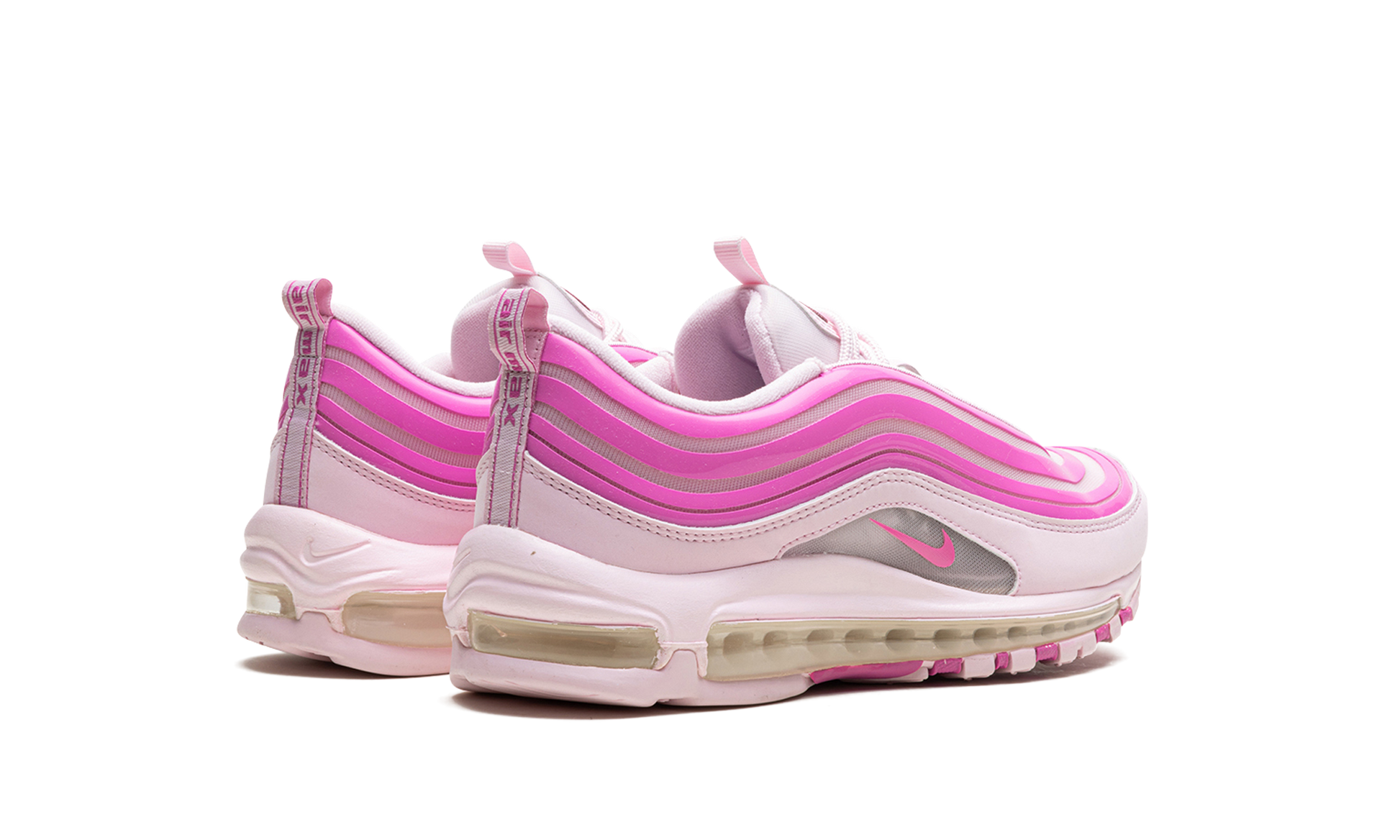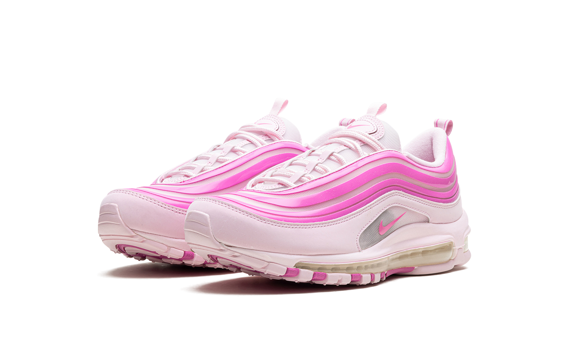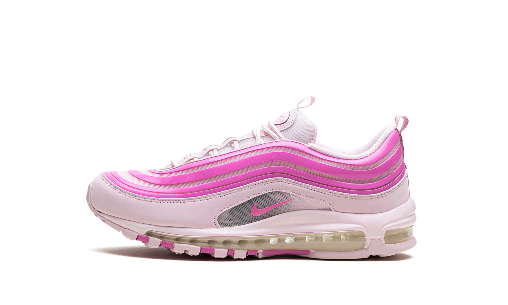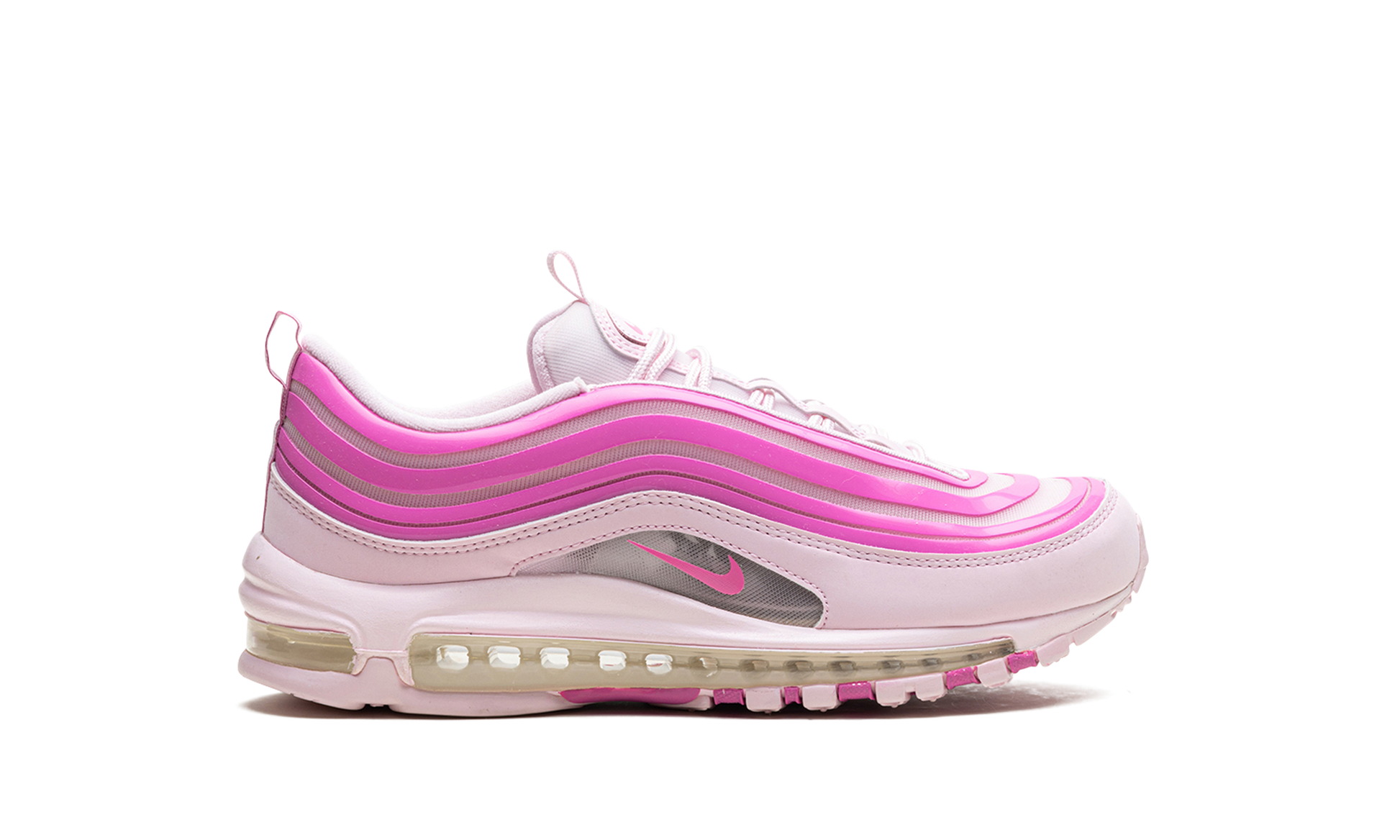 The Nike Air Max 97 "Pink Foam" is a colorway of the retro running shoe with an eye-catching pink design. From Nike’s Spring 2024 collection, the Air Max 97 “Pink Foam” turns heads with a candy paint inspired design that includes Pink Foam wavy overlays, and more. Specifically, the shoe features a lighter shade of pink on its base, and pink Swoosh branding on either side in the middle of the mudguard. A full-length Air cushioning unit appears in the midsole, while more pink accenting appears on the rubber outsole. Pink Foam