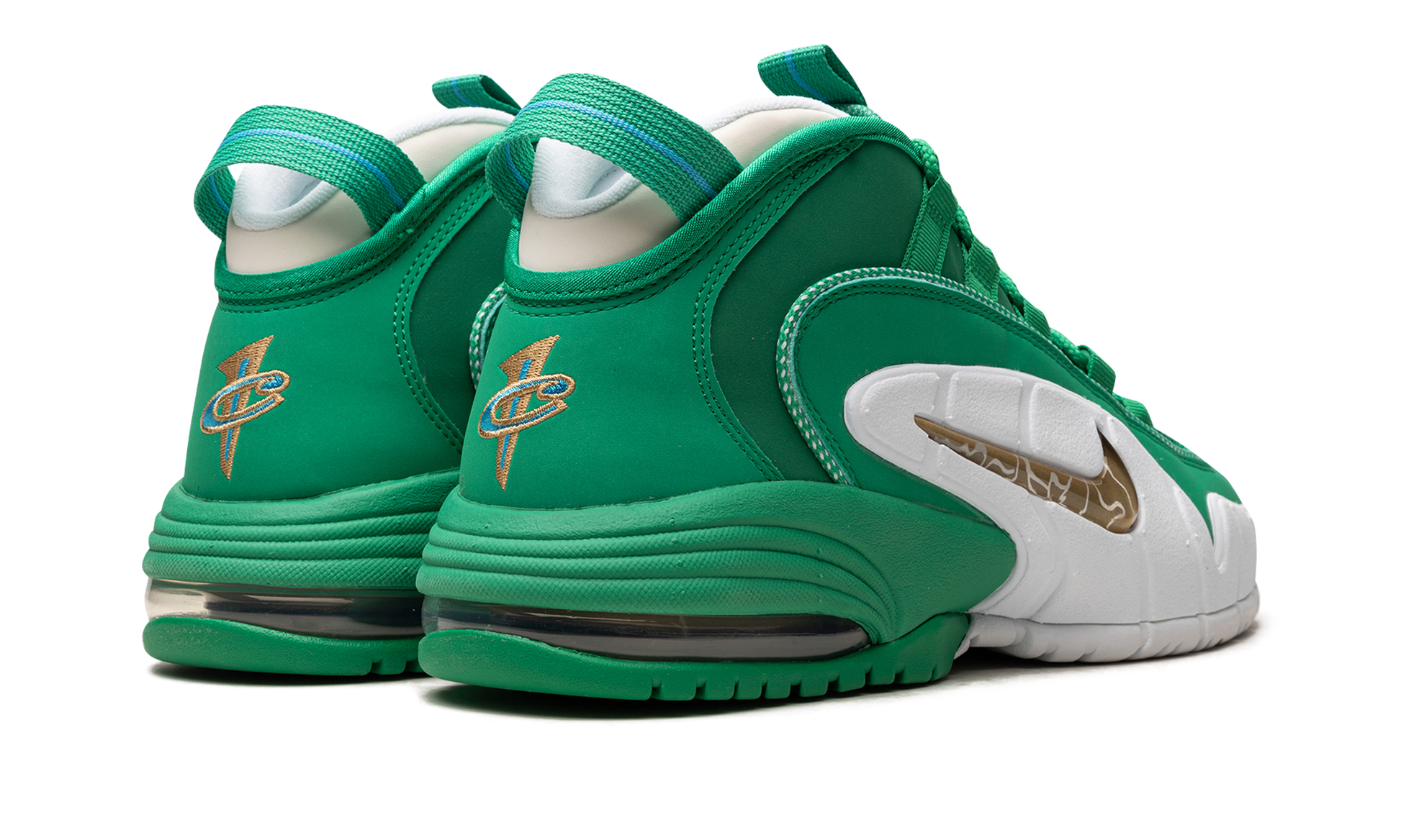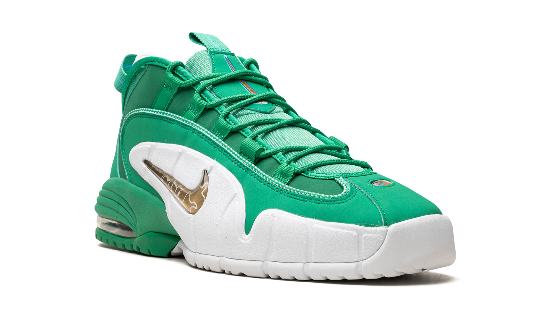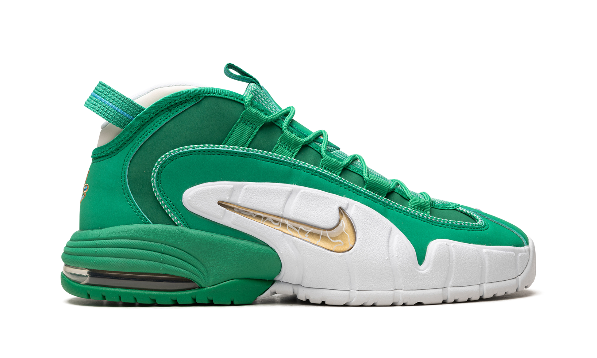 The Nike Air Max Penny 1 "Stadium Green" is a colorway of Anfernee “Penny” Hardaway’s first signature shoe with an eye-catching green design. A classic performance basketball sho, the Air Max Penny 1 was worn by Penny with the Orlando Magic during the 1995-96 NBA season. The “Stadium Green” colorway of the shoe features a green synthetic nubuck base with white detailing on the lateral side “wing” foam panels. Penny’s signature “1-Cent” branding is found on the heel, and Metallic Gold jewel Swooshes lay within the lateral side wings. A visible Air Max unit appears in the heel of the midsole to complete the celebrated sneaker. Release date: November 13, 2023 Stadium Green