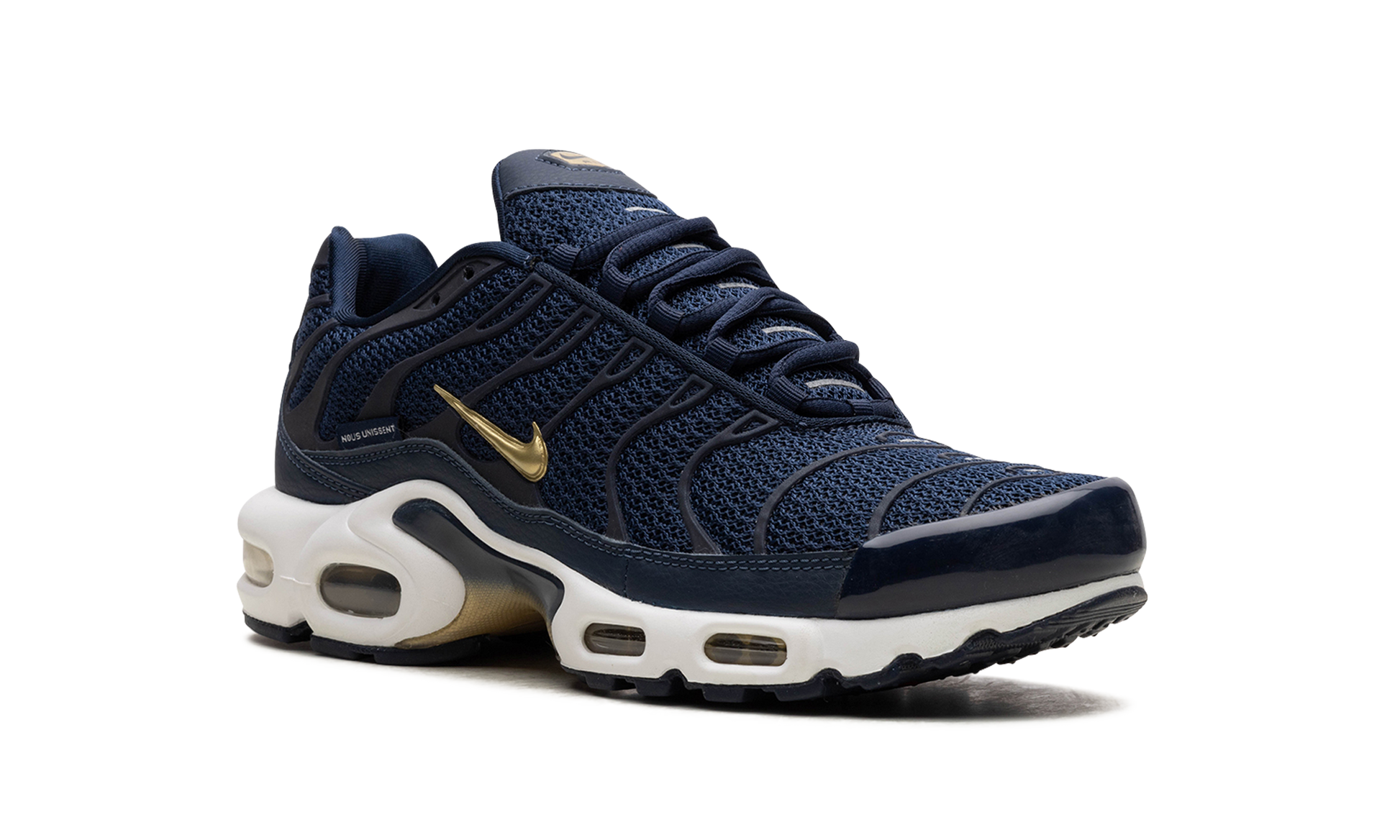 Nike Air Max Plus “FFF” is a colorway of the retro running shoe designed for the French Football Federation that celebrates the 2022 FIBA World Cup. Dubbed the “French Football Federation,” or simply “FFF” for short, this colorway of the Air Max Plus features a Midnight Navy mesh construction with tonal wavy TPU overlays. A Metallic Gold Swoosh logo can be seen on the sides, while “FFF” is stamped on the insole. Classic yellow Air Max Plus “TN” branding appears on the heel. Reflective detailing around the shoe’s upper shines when exposed to light in the dark. Release date: November 14, 2022 FFF