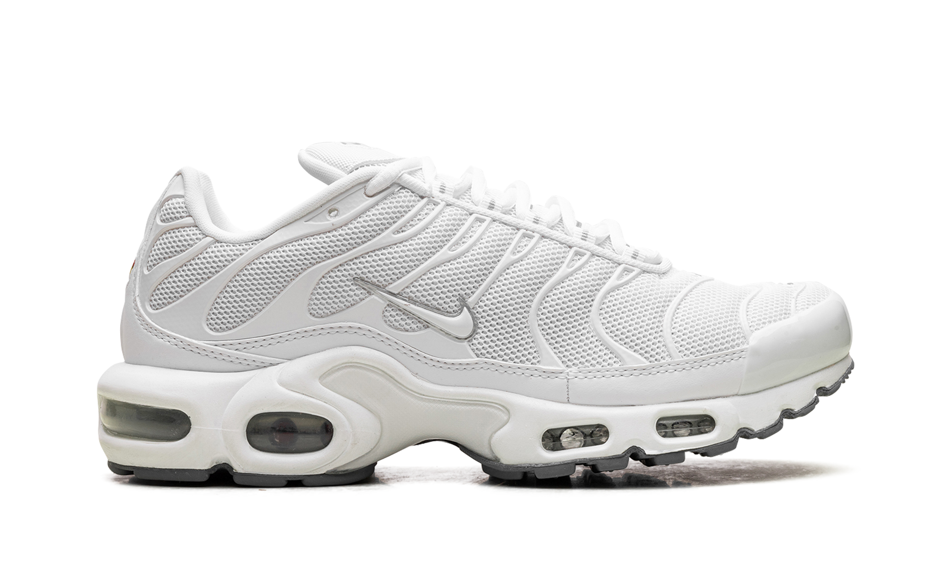 The Nike Air Max Plus “Triple White” places an emphasis on the retro runner’s versatility as a lifestyle option in a highly wearable colorway. The Nike Air Max Plus received an unquestioned boost in popularity when Supreme tapped the shoe for its Fall/Winter 2020 collaboration in three exciting colorways. In the late ‘90s and early 2000s, the Air Max Plus was a staple in UK Grime culture, as well. Today, the Air Max Plus is beloved by everyone and an essential part of Nike’s annual footwear releases. The “Triple White” colorway keeps a clean appearance thanks to its stark white mesh base and its tonal TPU overlays. A small yellow “TN” emblem (for Tuned Air, which is also an alternate nickname of the Air Max Plus) appears on the back of the shoe and adds a timeless sportswear vibe to the design. A tonal Swoosh logo appears on either side of the shoe and a glossy white leather mudguard above the white rubber midsole keeps the original design of the Air Max Plus intact. Visible Air units in the forefoot and heel reveal Nike’s aforementioned “Tuned Air” technology. Triple White