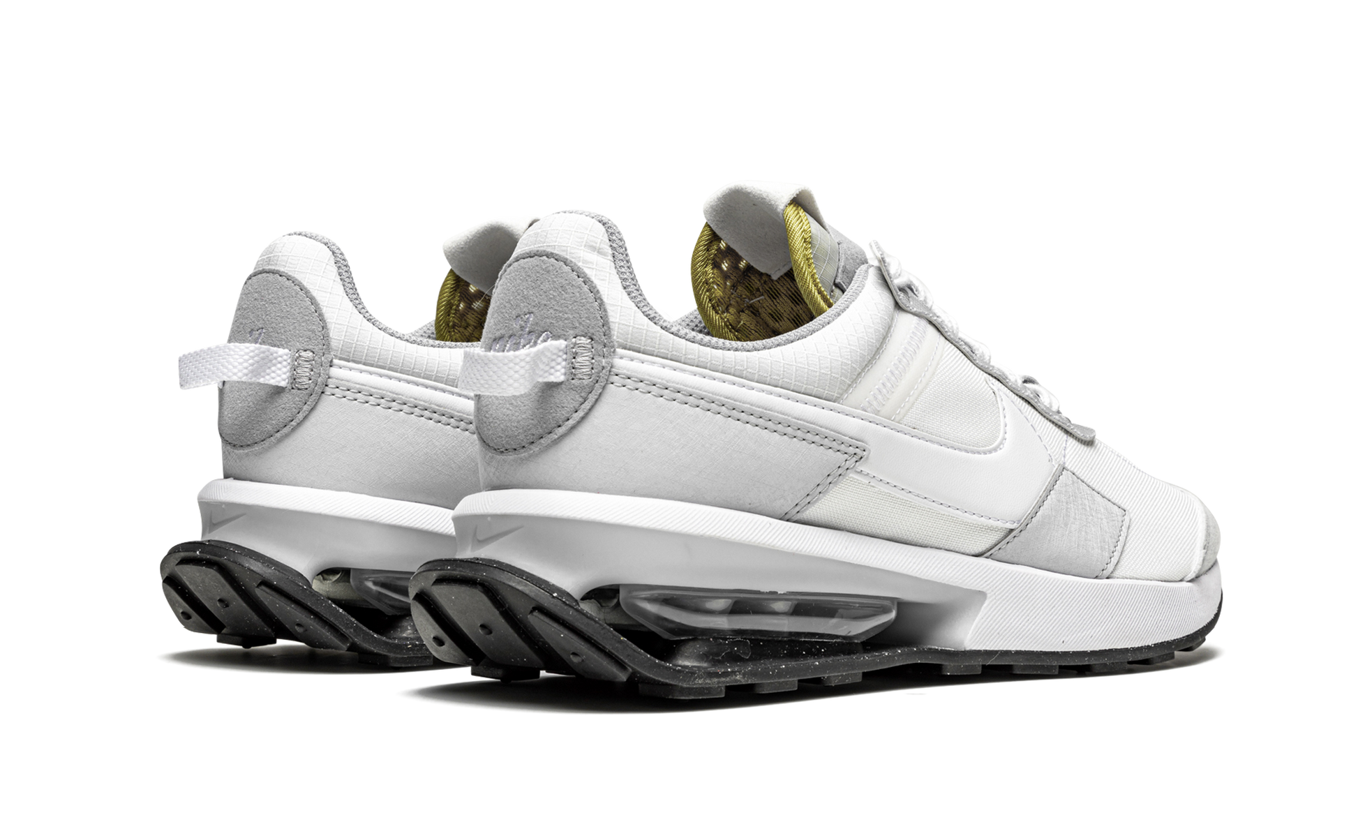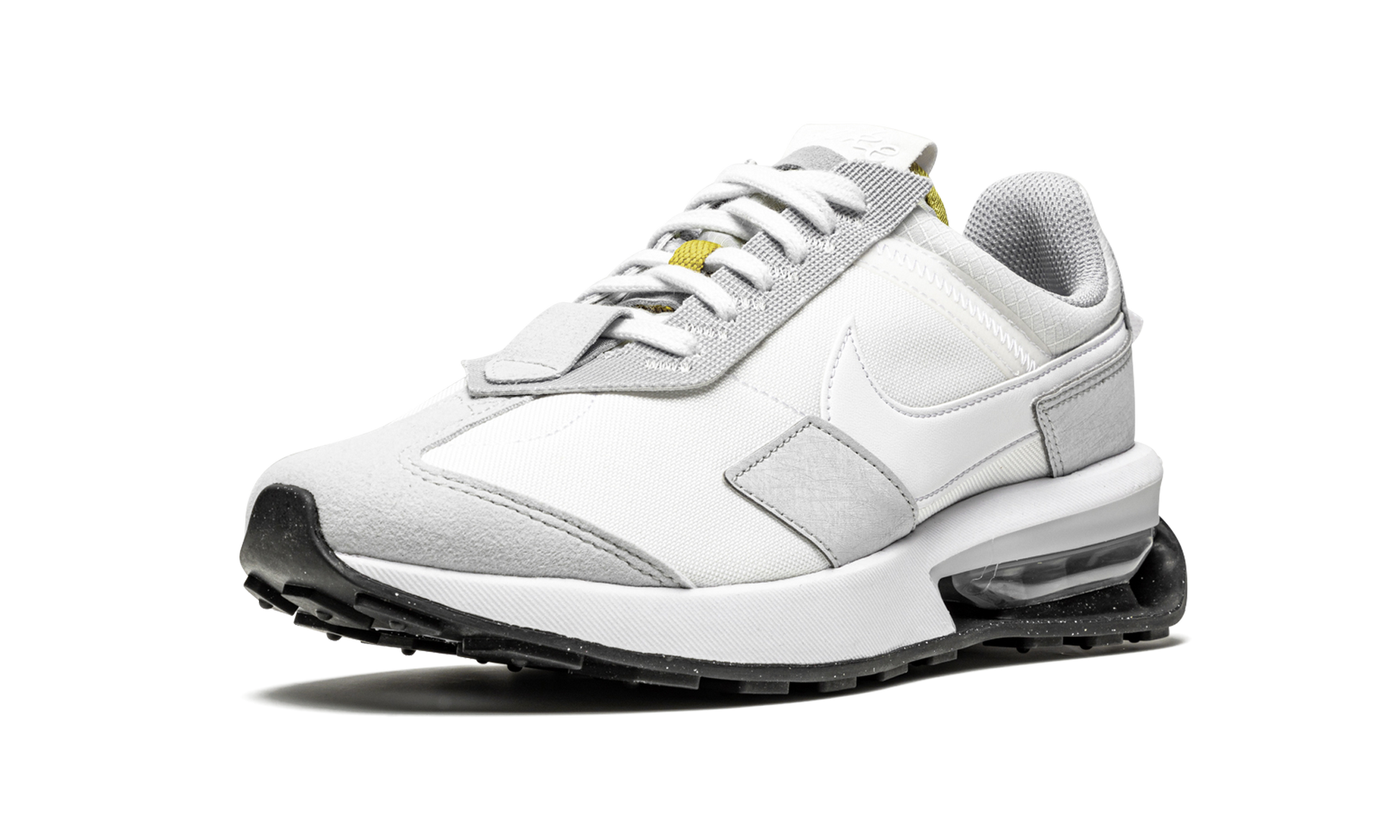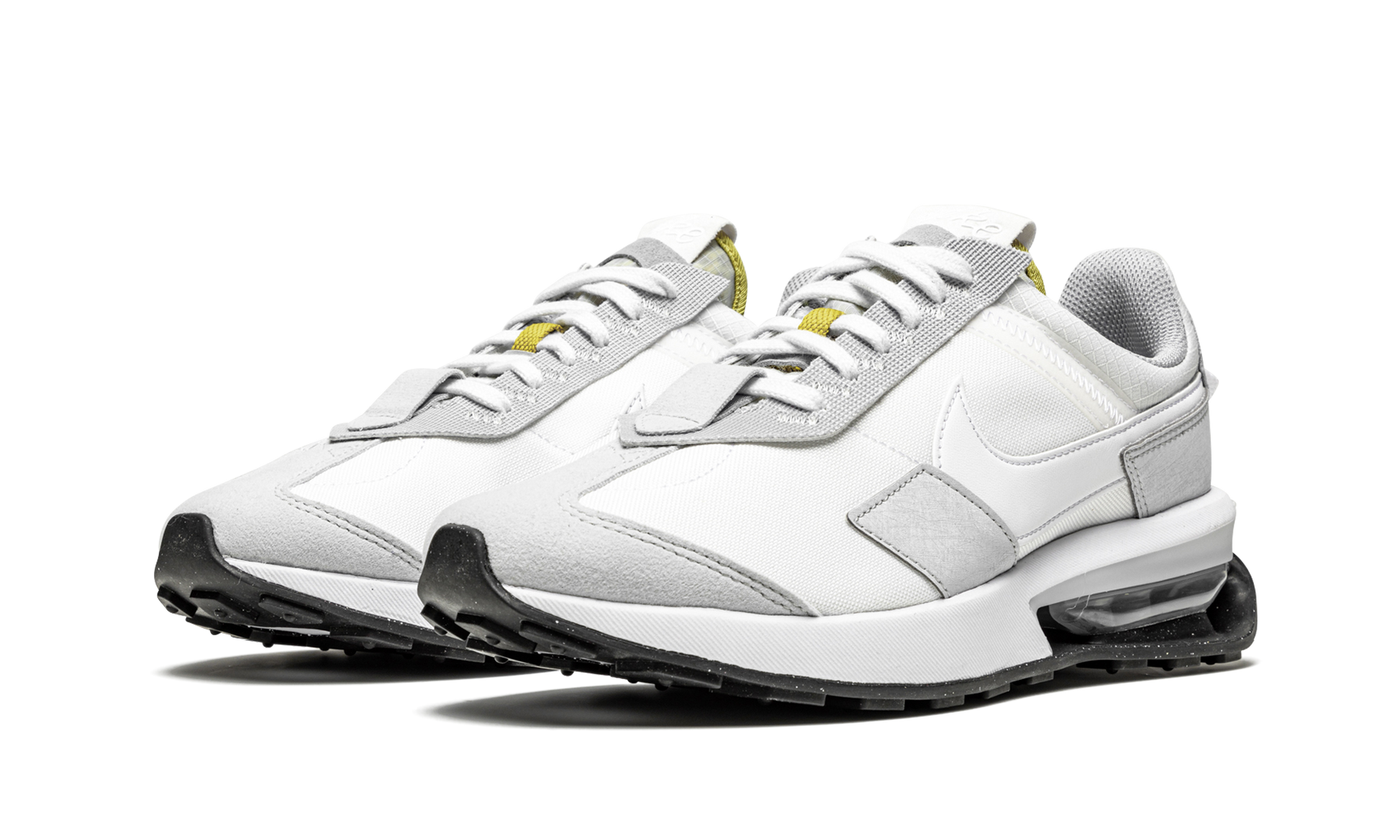 The Nike Air Max Pre-Day “Pure Platinum” is a futuristic yet retro-inspired low-top shoe that debuted on Nike’s Air Max Day in March 2021. Borrowing its name from the late Steve Prefontaine, the Air Max Pre-Day is informed by classic Nike running shoes like the Waffle Racer and modern lifestyle looks. On the “Pure Platinum” colorway, a white woven material forms the base and Pure Platinum hits appear on the toe, eyelets and various overlays along the sides and on the heel counter. A white leather Swoosh on the mid-panel extends past the heel and forms into a pull tab on the back of the shoe. Yellow exposed foam padding appears on the sides of the vintage-inspired cream-colored nylon tongue. A visible Max Air unit in the heel of the white EVA foam midsole cuts a strikingly modern look. The thin black rubber outsole is rounded on the heel. Release date: Spring 2021. Pure Platinum