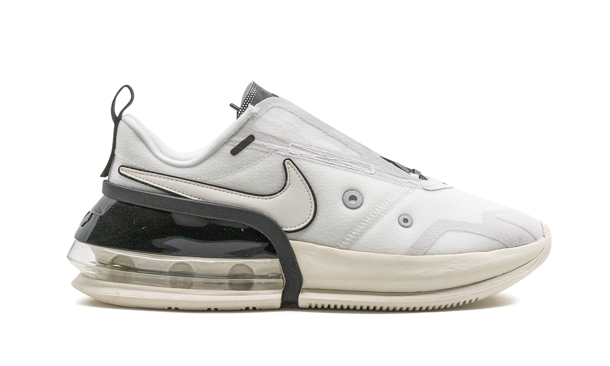 The Nike Air Max Up is a lifestyle sneaker exclusively made for women. With a design inspired by the Air Max Dia, the sneaker brings a futuristic aesthetic with a larger-than-life heel Air unit. The unconventional, yet super fashionable-looking silhouette is made of a synthetic leather and textile upper and TPU frame, which offers additional support and durability for the foot. This iteration from the “Audacious Air” pack takes on a neutral color scheme with white, ivory, and black alternating on each of the shoe's elements.