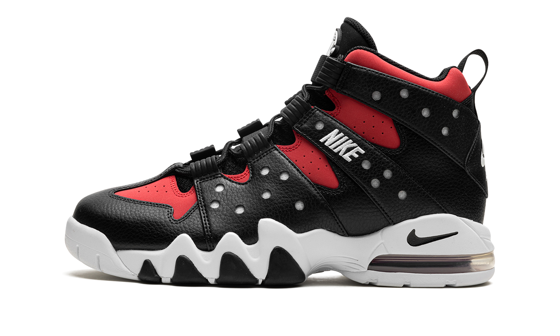 The Nike Air Max2 CB ‘94 “Gym Red” is a mostly two-tone, black-and-red colorway of Charles Barkley’s classic signature shoe. Debuted in 1994, the Air Max2 CB ‘94 was worn by the Basketball Hall of Famer with the Phoenix Suns back in the day, and is considered one of the very best performance hoops shoes of Nike’s ‘90s-era glory years. Quintessentially retro, the “Gym Red” is a Tinker Hatfield designed shoe inspired by the look of a straightjacket. The black leather overlays along the eyelets and midsole mimics the look of the confined garment. White “Nike” embroidery is stitched onto the midfoot harness that supports the lacing system and black accenting is located on the nylon tongue. A classic “Nike Air” logo is located on the heel and a mini Swoosh is seen on the back of the midsole. Like the original Air Max2 CB ‘94, this retro version of the shoe features a visible Air unit in the heel. Release date: Summer 2024 Gym Red