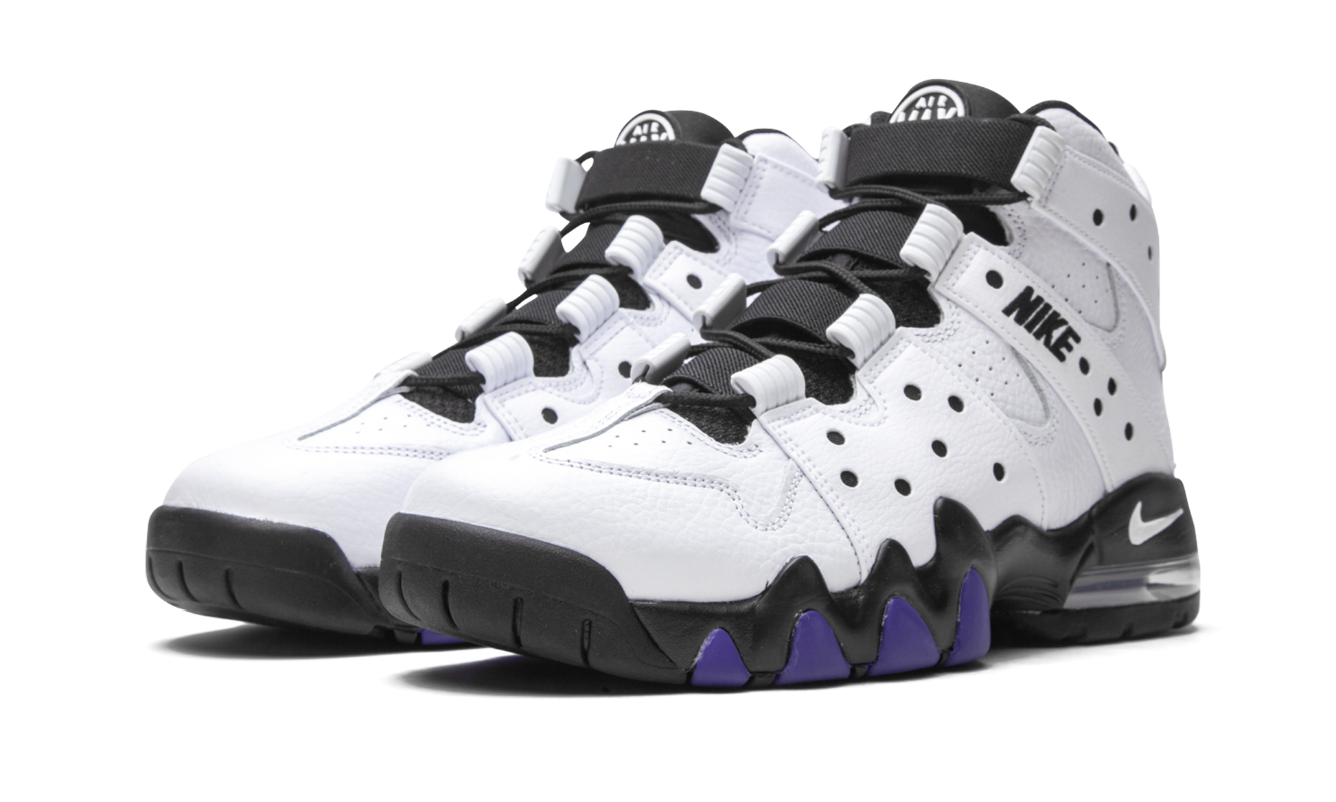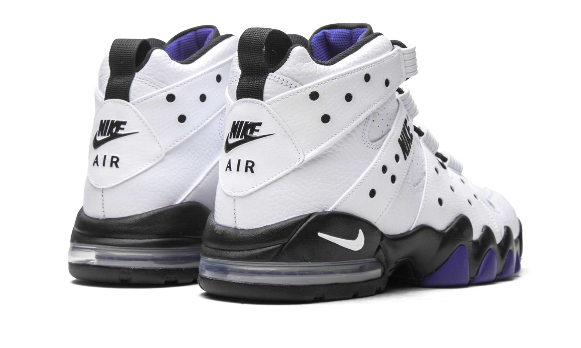 The Nike Air Max2 CB ‘94 “White/Varsity Purple” is an original colorway of Charles Barkley’s former signature shoe with Nike that debuted in 1994. The “White/Varsity Purple” was “Sir Charles’” “home” colorway of the Air Max2 CB ‘94—he wore a predominantly black version of the shoe when not playing in Phoenix during the ‘93-94 NBA season. Quintessentially retro, the “White/Varsity Purple” is a Tinker Hatfield designed shoe inspired by the look of a straightjacket. The white leather overlays along the eyelets and midsole mimics the look of the confined garment. Black “Nike” embroidery is stitched onto the midfoot harness that supports the lacing system and black accenting is located on the nylon tongue. A classic black “Nike Air” logo is located on the heel and a mini Swoosh on the back of the midsole. Like the original Air Max2 CB ‘94, this retro version of the shoe features a visible Air unit in the heel. Release date: February 15, 2021. White / Varsity Purple