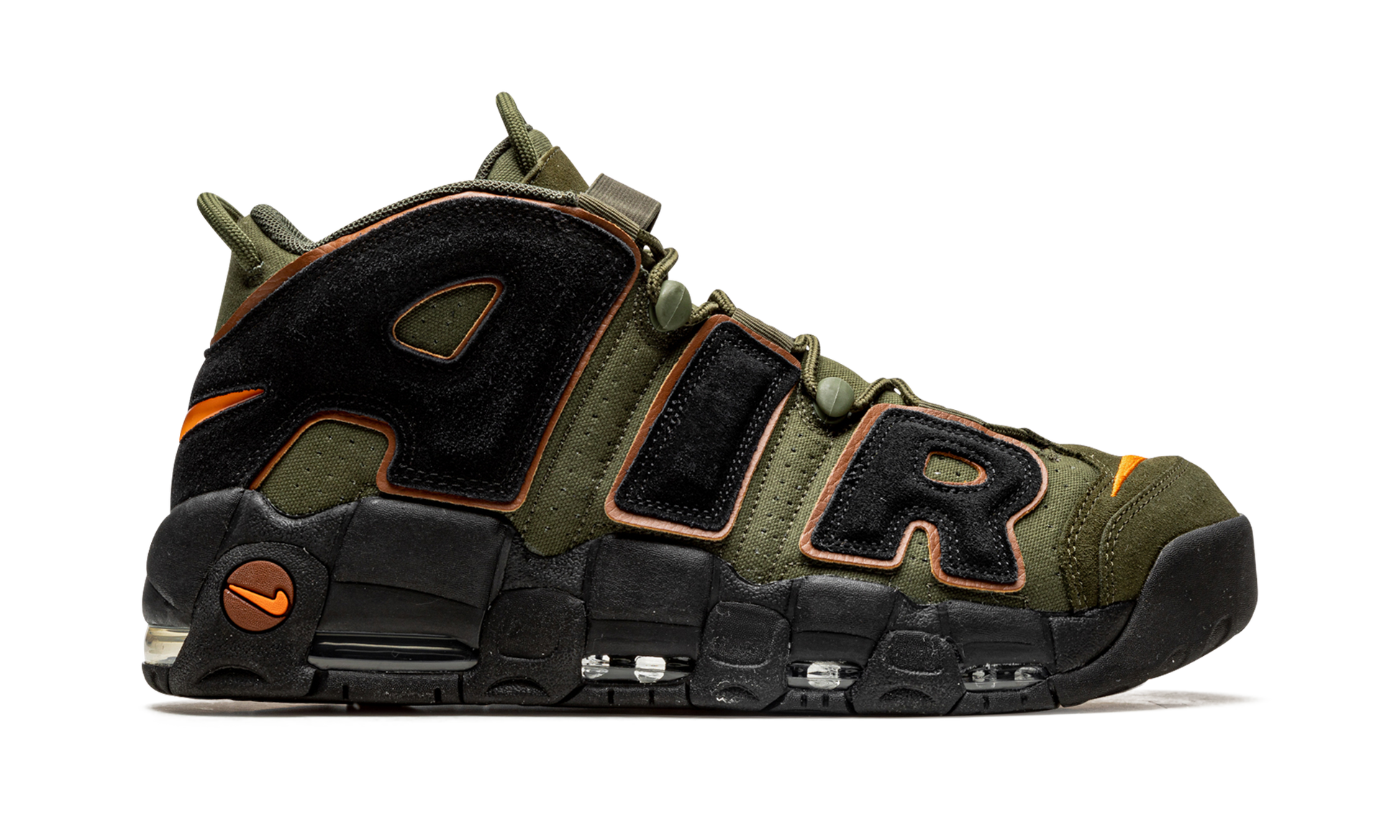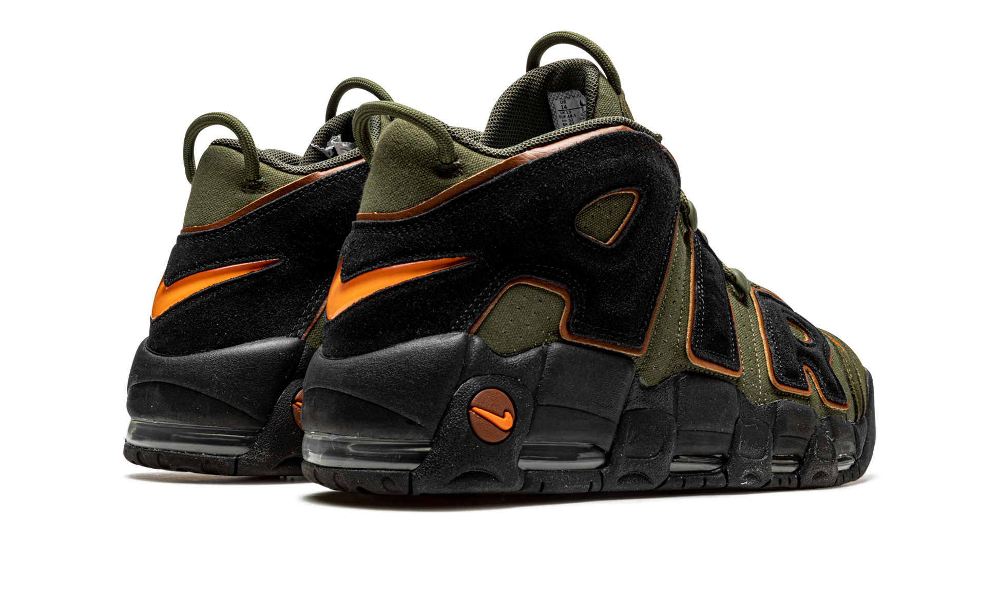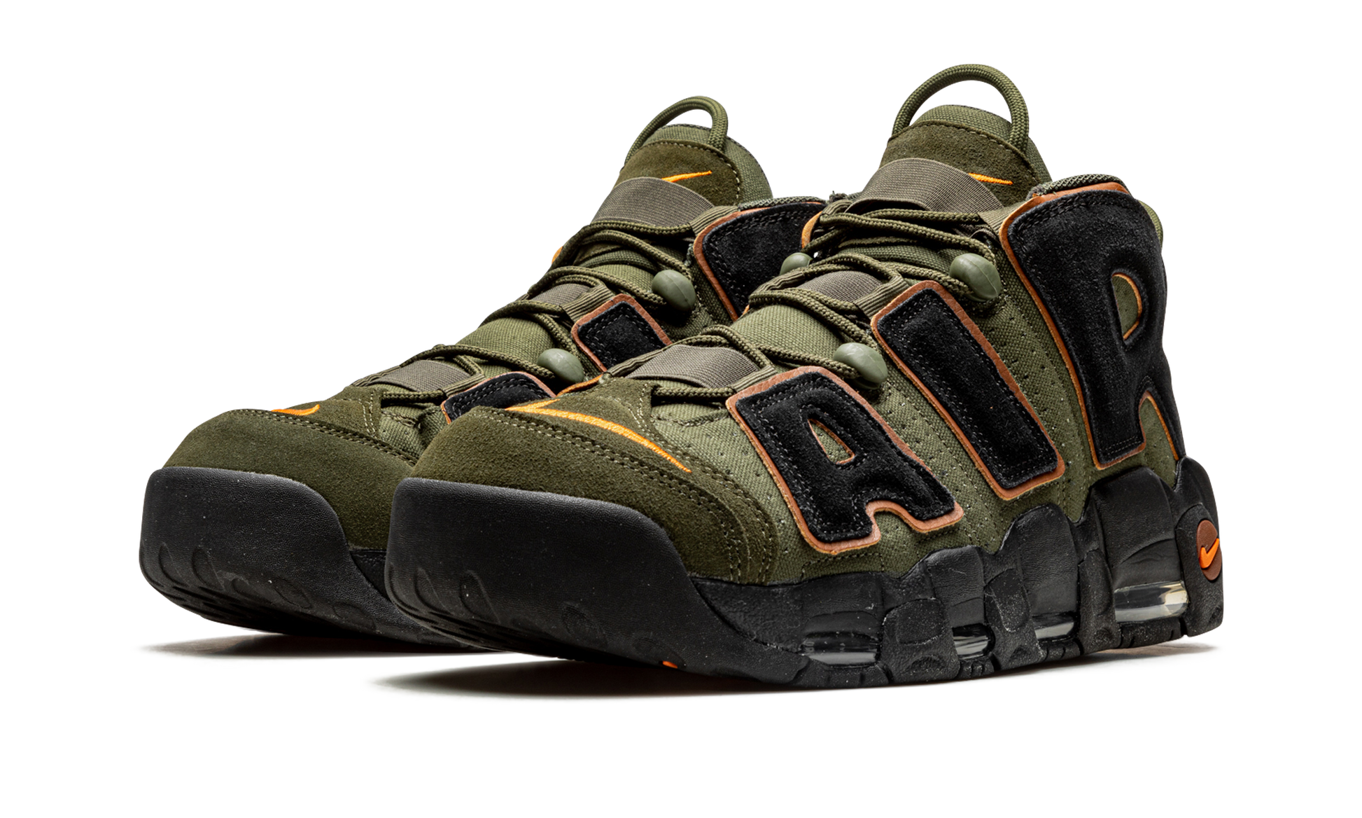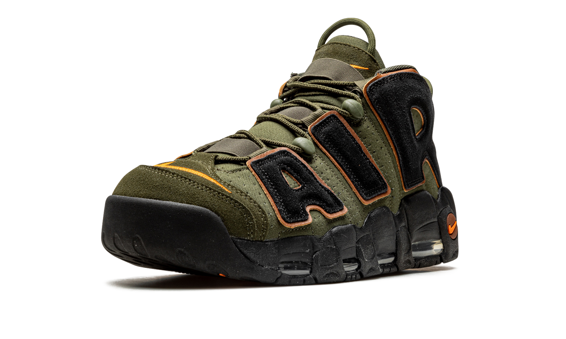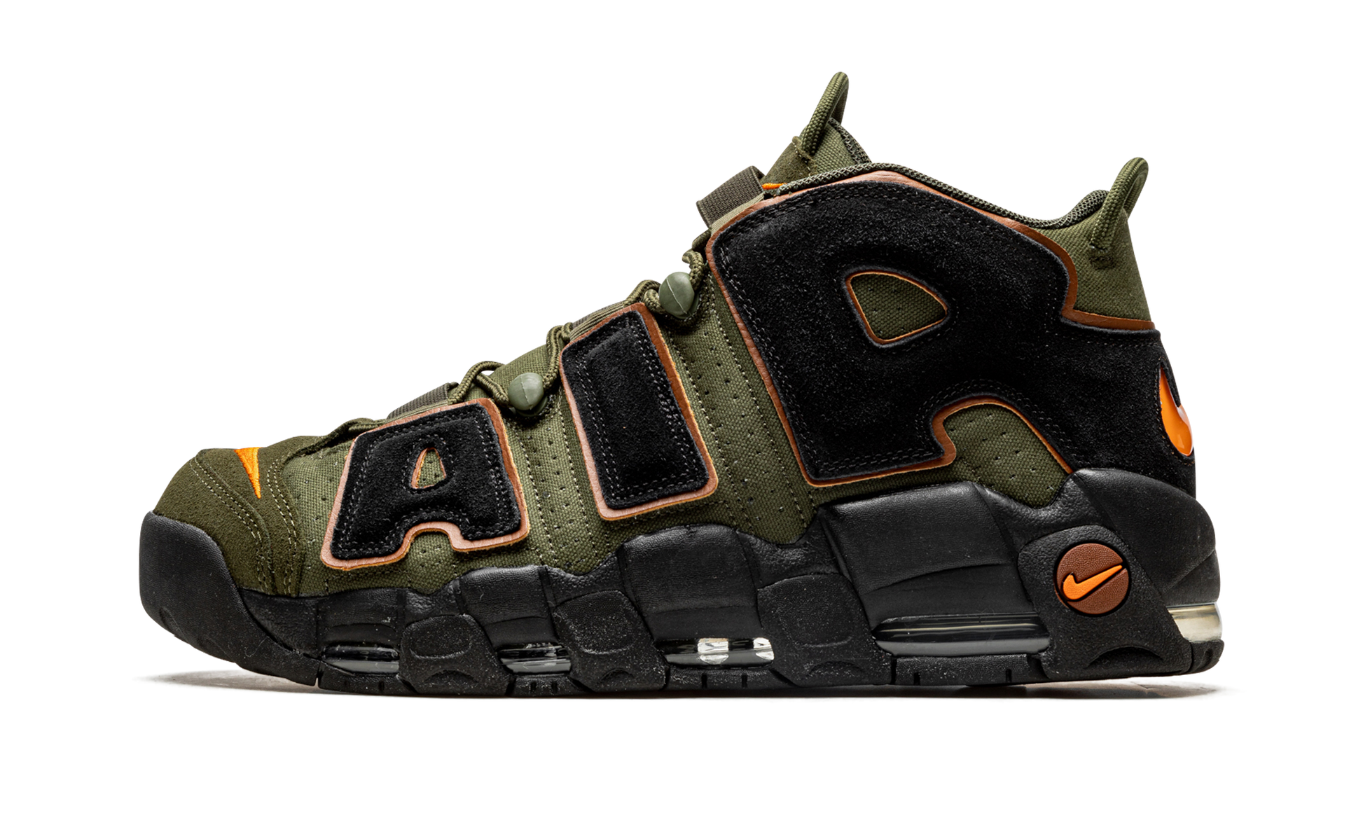 The Nike Air More Uptempo “Cargo Khaki” is an earth tone colorway of Scottie Pippen’s former signature shoe. The Air More Uptempo debuted back in 1996 is was worn by Pippen with the Chicago Bulls during the team’s historic 1995-96 season in the NBA. On the “Cargo Khaki,” the shoe receives a makeover that includes olive green-colored leather on its base and black suede oversized “AIR” branding on either side. An orange Swoosh logo is embroidered on the toe and a Jeweled Swoosh appears on the heel. Two olive green pull loops, one on the tongue and the other on the heel, assist with easy on/off wearability. Visible Air cushioning is found in the black rubber midsole. Release date: September 14, 2022 Cargo Khaki
