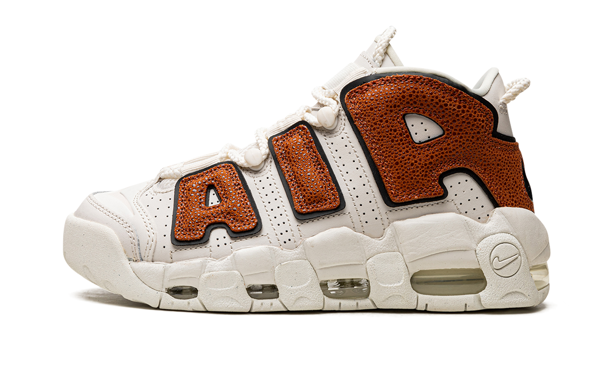 The Women’s Nike Air More Uptempo “Basketball” is a women’s-exclusive colorway of the vintage basketball shoe with basketball-inspired branding. The Air More Uptempo originally debuted in 1996 and was worn by Scottie Pippen with the Chicago Bulls in the NBA. In recent years, the shoe has made a comeback as a casual, everyday-wearing lifestyle shoe in colorways such as this, which features basketball-textured “AIR” branding on either side of its design. As for the rest of the sneaker, it features a Sail leather construction with a matching Sail rubber midsole. A black jeweled Swoosh is located on the heel. Rope laces give the shoe a casual vibe. Release date: November 9, 2022 Basketball