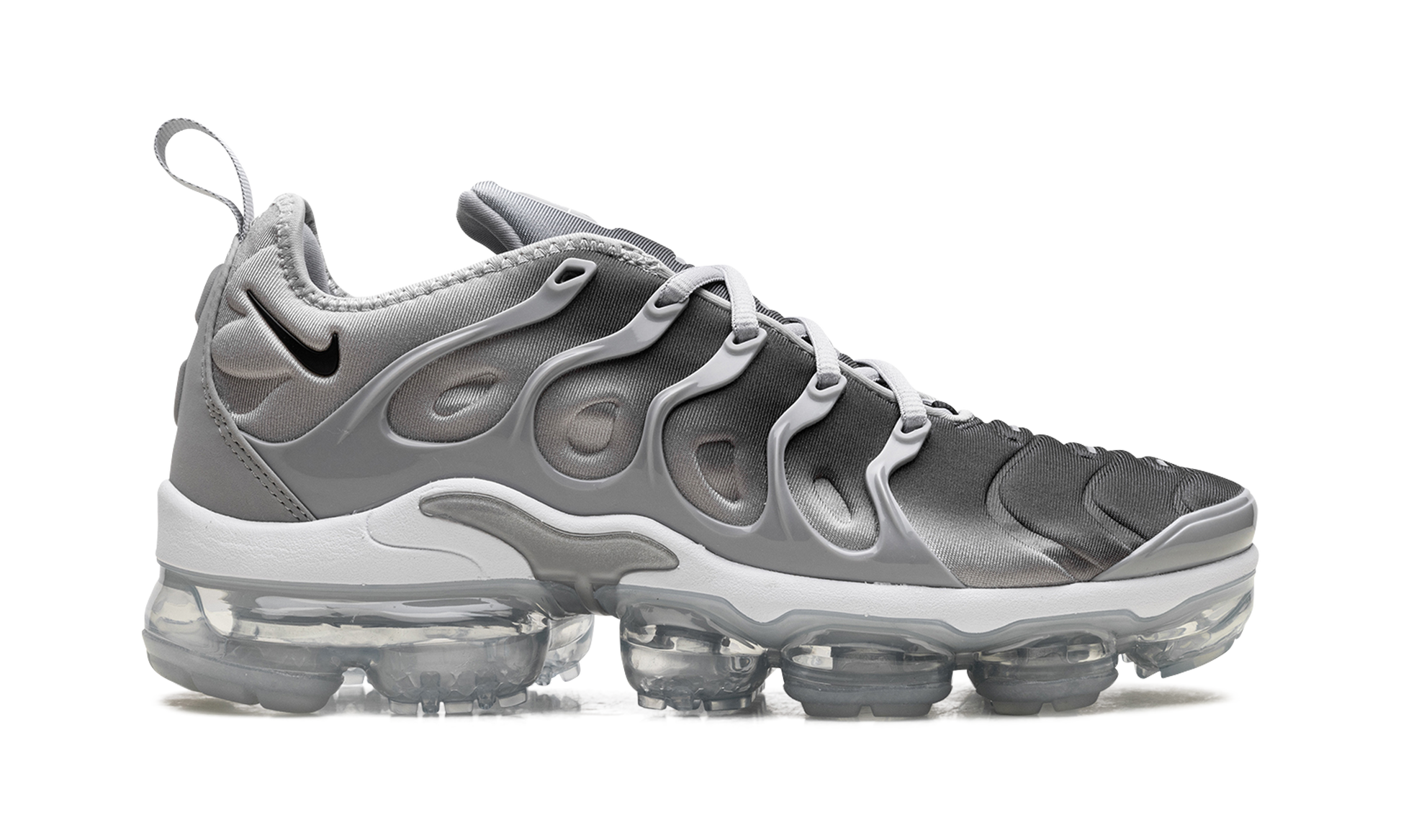 The Nike Air VaporMax Plus “Wolf Grey” features a dark-to-light grey gradient pattern across its neoprene upper. This updated version of the popular Nike Air Max Plus runner from the late ’90s sports callbacks to the original like wavy overlays, reflective hits on the heel and toe box, a mini Swoosh on the lateral side panel, and a yellow “Vm Air” logo on the heel to mimic the Tuned Air hit of the 1998 silhouette. The lightweight upper sits atop a white midsole and responsive VaporMax unit for all day comfort. Silver Gradient