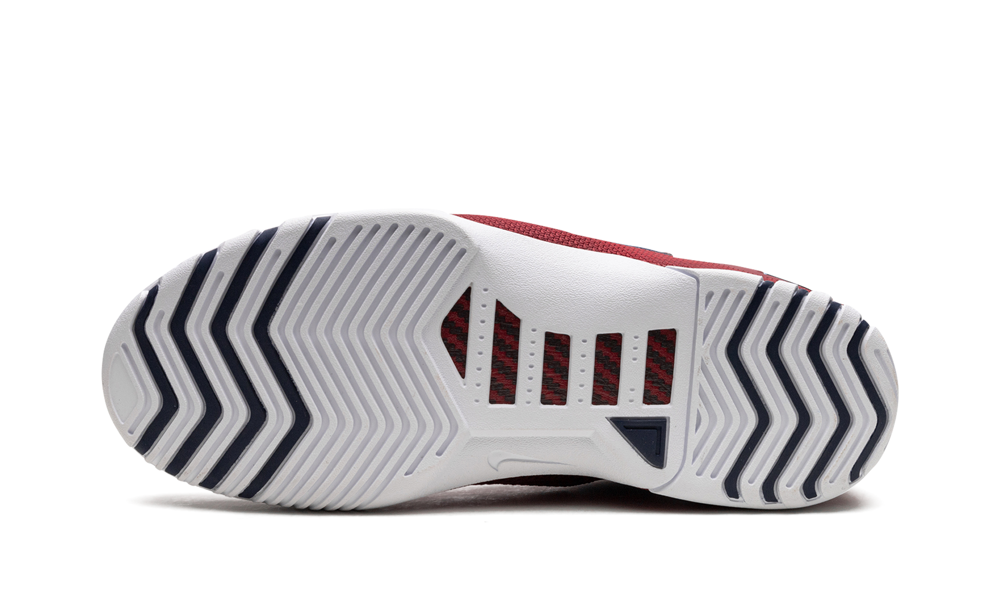 The Nike Air Zoom Generation “First Game” is the modern version of the original colorway of LeBron James’s first signature shoe that was worn by the basketball superstar during the first home game of his rookie season in 2003. The shoe features a white leather upper, a Varsity Red mesh mid-panel and accents. A white Swoosh with Midnight Navy trim appears on the side. Underfoot, Zoom Air cushioning is embedded in the forefoot of the midsole while an Air unit is encapsulated in the heel. The date, “11-5-2003” is embroidered in gold stitching on the inner collar, a nod to LeBron’s first home game in the NBA. Release date: March 21, 2023 First Game