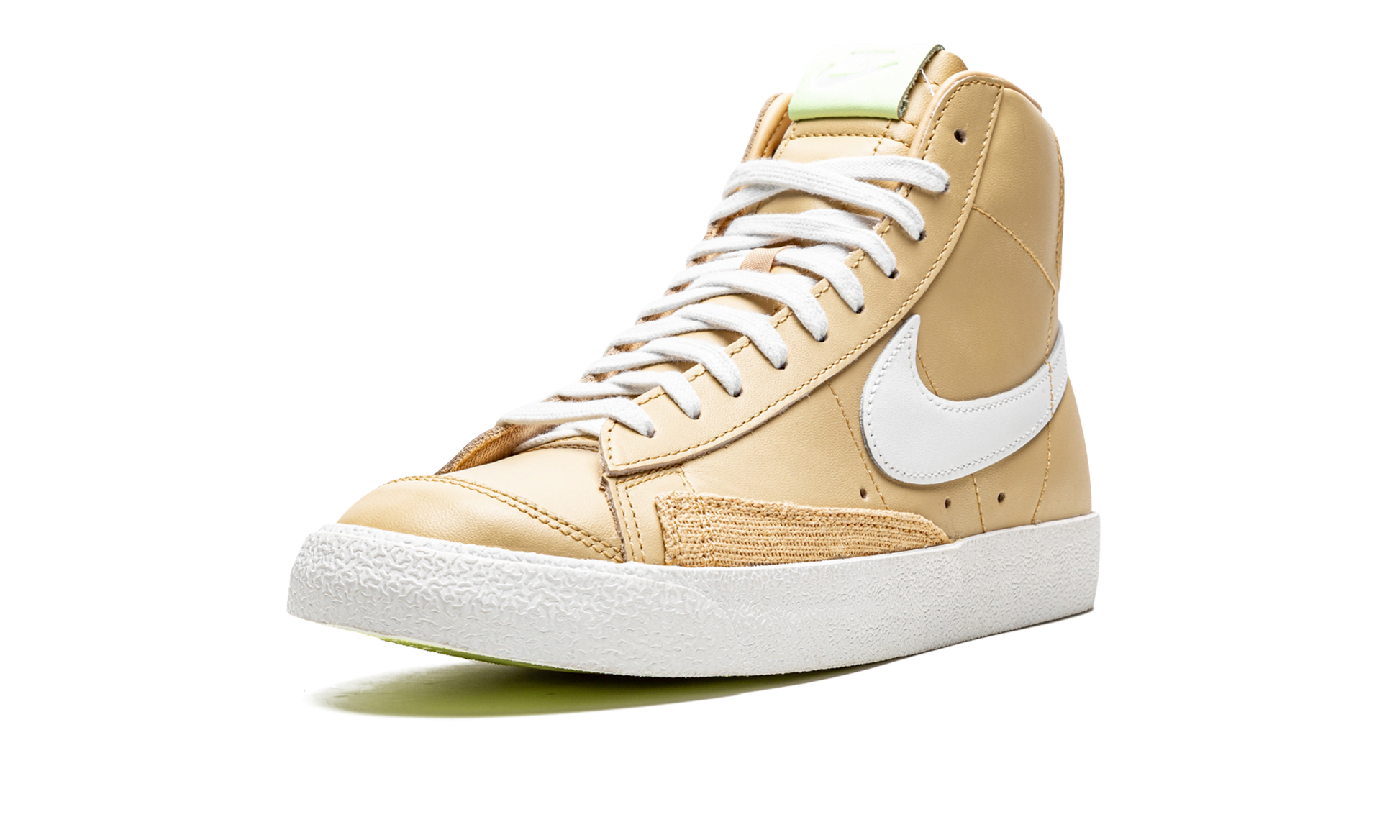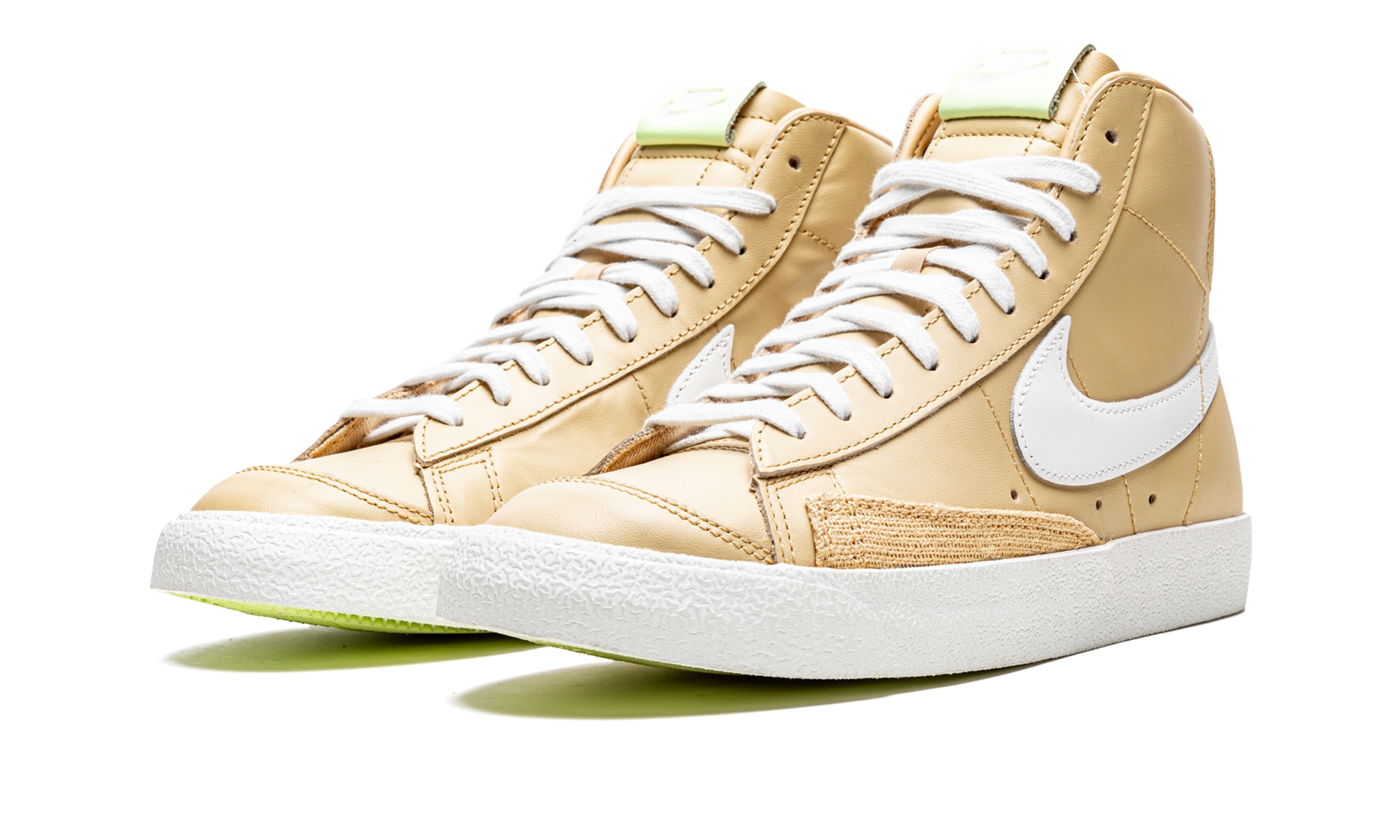 Beige leather Blazer Mid '77 high-top sneakers from NIKE featuring signature Swoosh logo detail, embroidered logo to the rear, round toe, front lace-up fastening, logo patch at the tongue, ankle-length, branded insole and flat rubber sole. These styles are supplied by a premium sneaker marketplace. Stocking only the most sought-after footwear, they source and curate some of the most hard to find sneakers from around the world.. Sesame