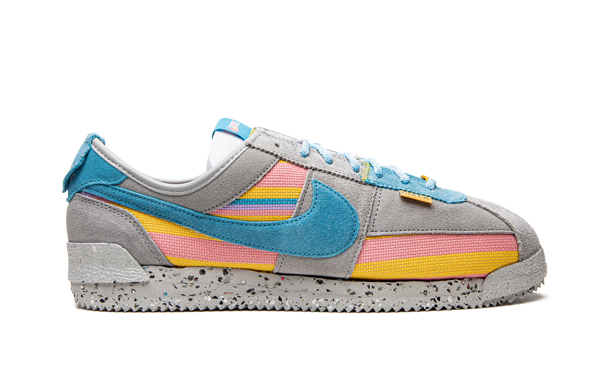 The Union x Nike Cortez “Grey/Blue” is a collaboration by the Los Angeles based clothing and sneaker retailer that celebrates the retro running shoe’s legacy and close ties to the greater LA area. One of several colorways by Chris Gibbs and Union in 2022 that honors the Nike Cortez’s 50th anniversary, the “Grey/Blue” updates the model with Union’s signature colors and textiles for a completely new look for the classic shoe. Grey suede overlays contrast the multicolor striped knit base. A Coral-colored suede Swoosh is found on both sides. The hue also appears on the heel tab, as well as on the heel overlay with Union’s “Frontman” logo. The shoe’s sole is made from sustainably sourced materials as Nike’s recycled Crater Foam and Grind rubber comprise the midsole and outsole, respectively. Release date: July 21, 2022 Union - Grey/Blue