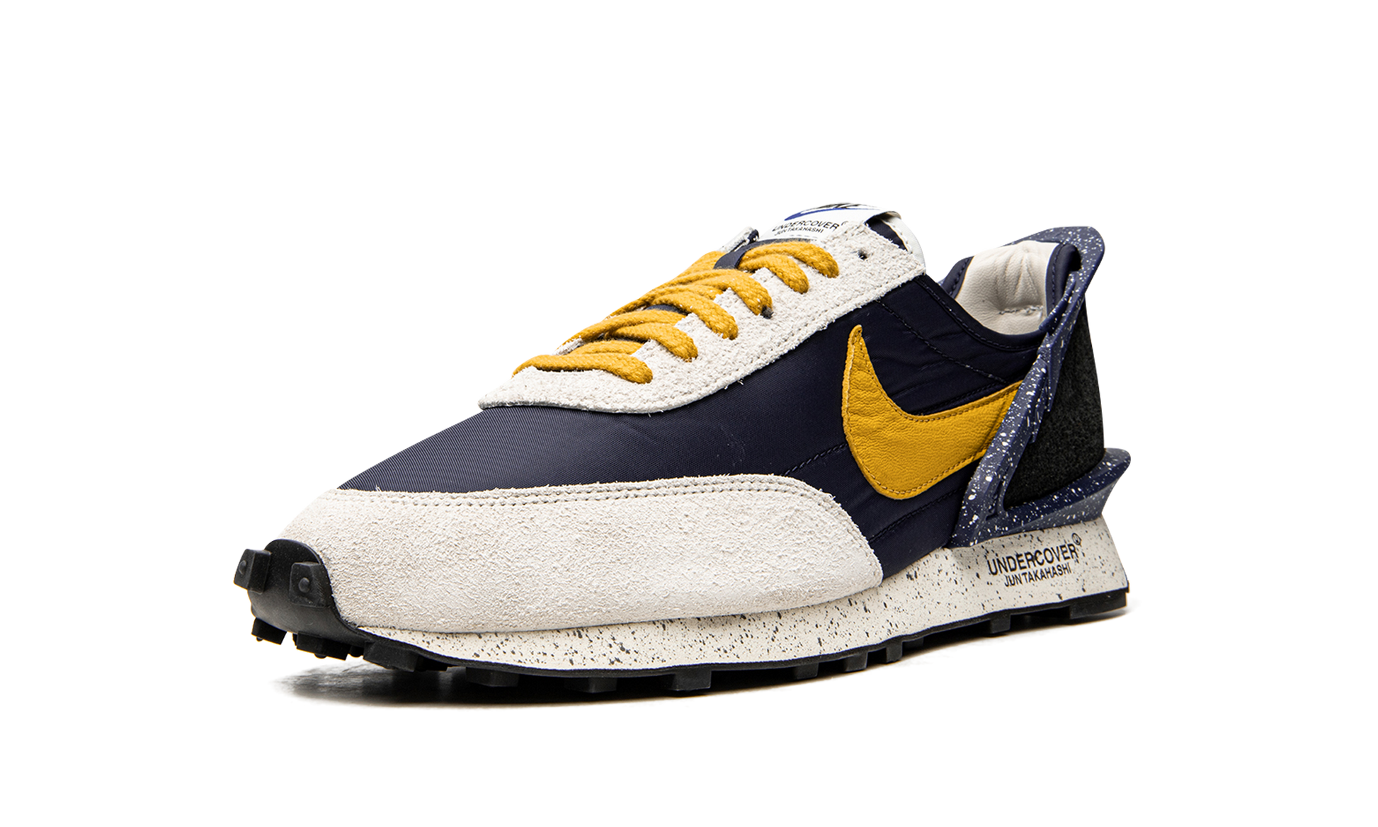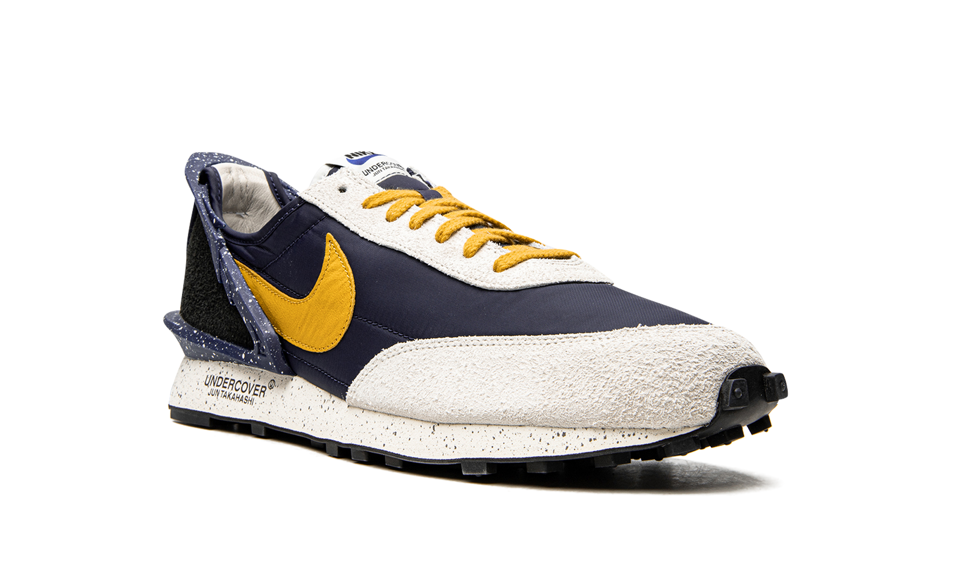 The Undercover x Nike DBreak “Obsidian” is one of several colorways released within the ongoing collaboration between Japanese streetwear brand Undercover and Nike. Updated with a high fashion, street-ready sensibility, Undercover’s lead designer Jun Takahashi remodels the vintage Daybreak running shoe with a futuristic aesthetic. The upper is constructed with an Obsidian nylon base and Sail suede overlays, while Gold Dart Swooshes and laces add a pop of bright color. The signature piece of this Undercover collaboration, the added TPU heel clip, is featured in Obsidian with white speckles. Unique Undercover/Jun Takahashi branding on the speckled midsole and a waffle rubber outsole complete the retro-meets-future design. The Undercover x Nike DBreak “Obsidian” released Summer 2019. Obsidian