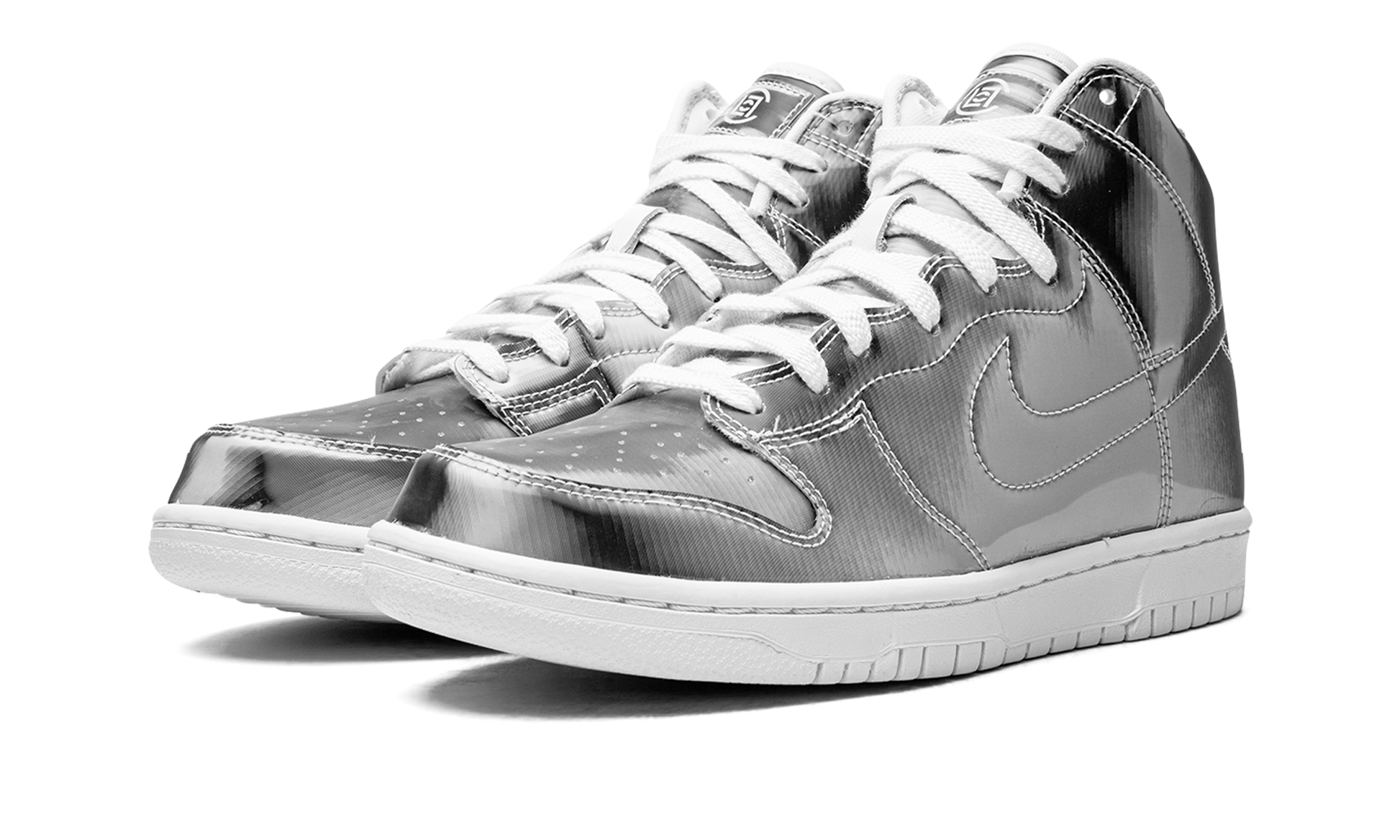 The Clot x Nike Dunk High “Flux” is a collaboration between Edison Chen’s popular streetwear brand and Nike on a colorway of the vintage basketball shoe that draws from the Yin-Yang philosophy of attraction. From March 2022, the “Flux” is inspired by Chen’s fascination with Yin-Yang and his belief that life is ever-changing. The colorway is Metallic Silver, and according to Chen, “the ends of the spectrum are white and black, and the mixture of those in the middle is what causes this chrome-like, silver effect on the shoe.” Indeed, the entire upper of the shoe appears in a glossy silver finish. Contrast stitching outlines each panel. Dual “Clot” and “Nike” branding is found on the tongue tag. An all-white rubber sole completes the look. Release date: March 18, 2022 Clot - Metallic Silver