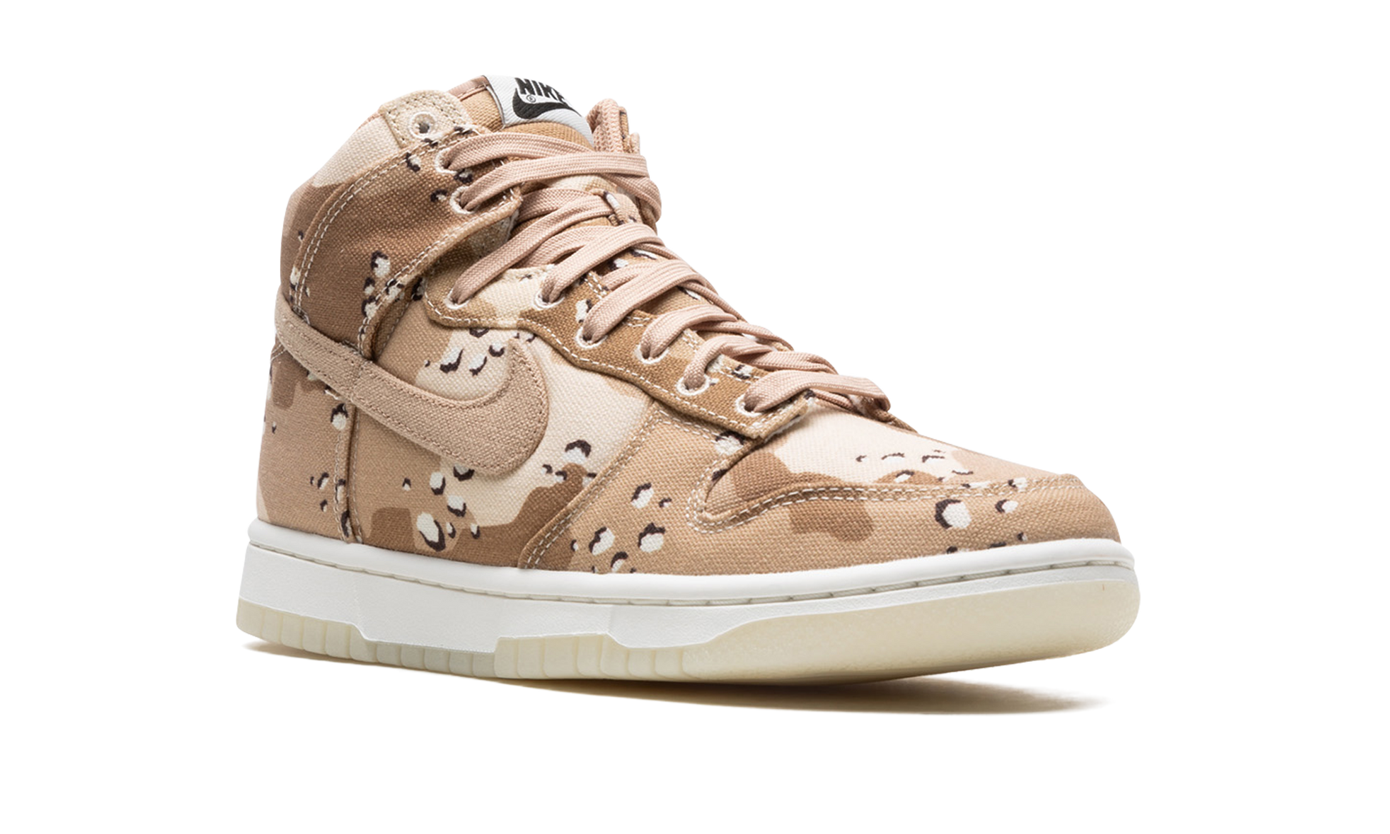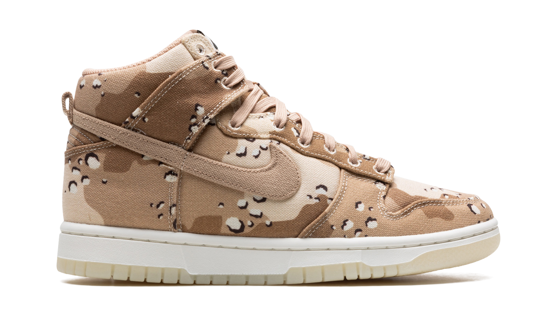 The Women’s Nike Dunk High “Desert Camo” is a women’s-exclusive colorway of the retro basketball shoe that features an appealing desert camo design. The “Desert Camo” is equipped with an all-over desert camo canvas upper. The look is contrasted with a tan canvas Swoosh on the sides and tan laces. Classic black “Nike” and Swoosh branding can be found on the white nylon tongue tag. The white midsole is contrasted with a semi-translucent outsole. Release date: August 26, 2022 Desert Camo