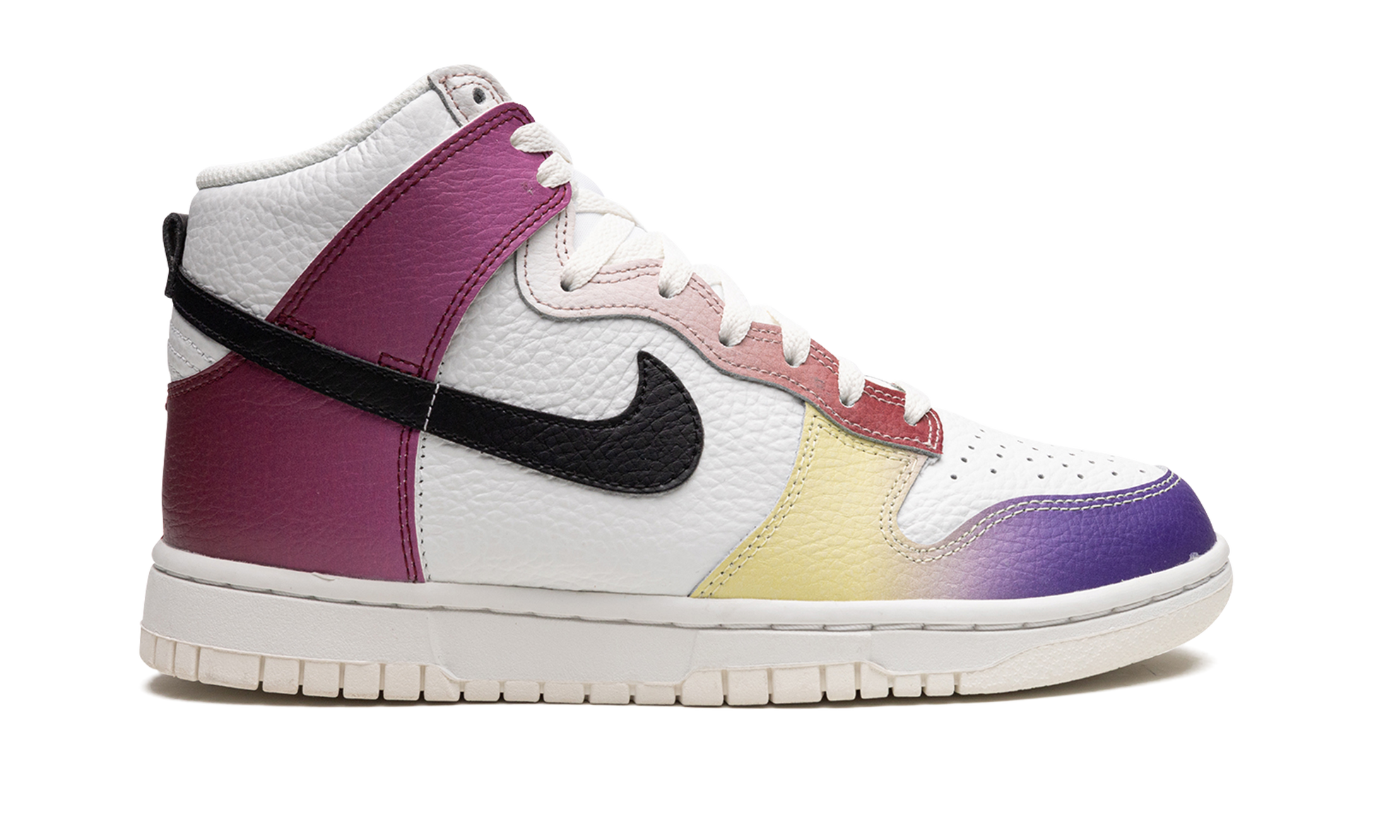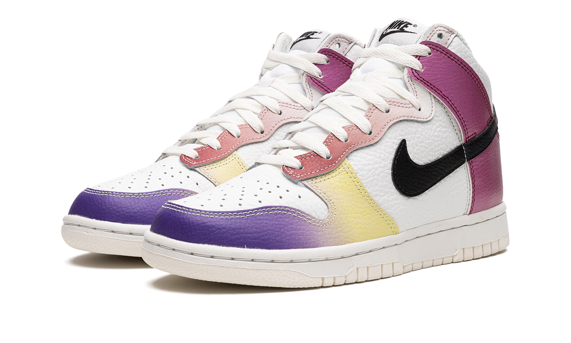 The Women’s Nike Dunk High “Multicolor Gradient” is a women’s-exclusive colorway of the casual shoe with unique, gradient designs on its overlays. Yet another can’t-miss Dunk style, the “Multicolor Gradient” turns heads with a Summit White leather construction contrasted with multicolor gradient overlay panels in hues of pink, purple, red, and yellow. A black leather Swoosh appears on the sides of the shoe and classic “Nike” branding is found on the tongue. Multicolor Gradient