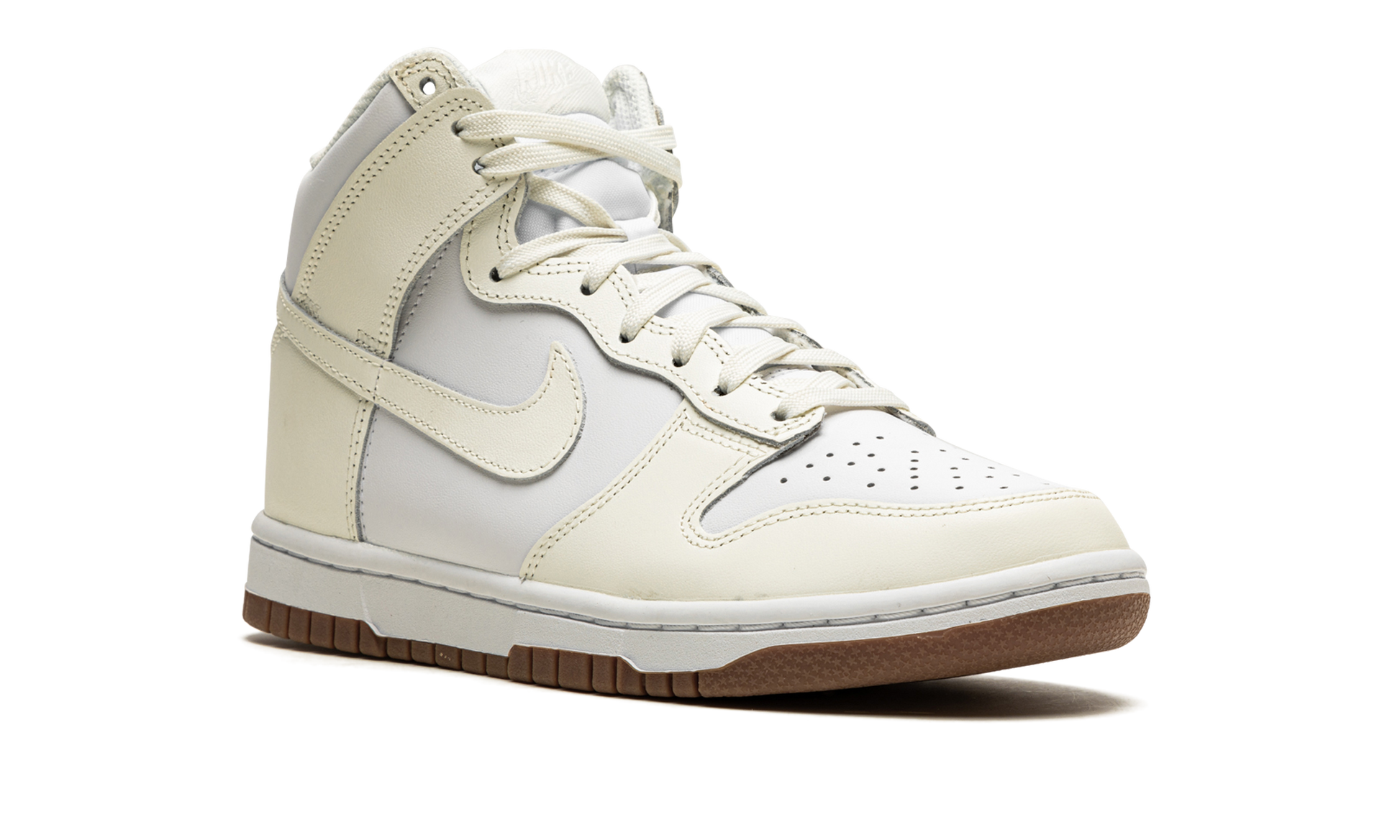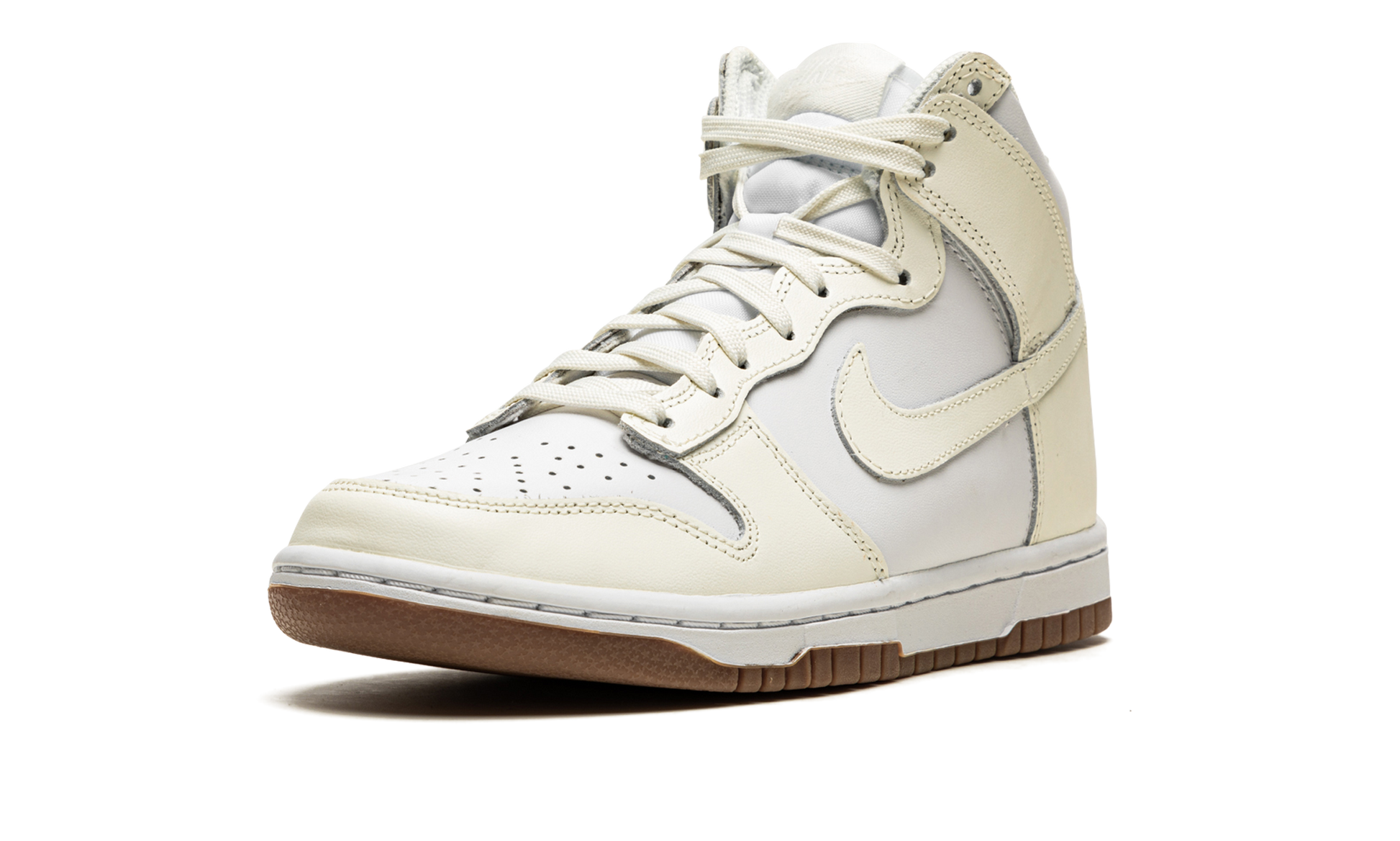 The Women’s Nike Dunk High “Sail/Gum” is a women’s-exclusive colorway of the vintage basketball and lifestyle shoe by Nike arranged in a classic, two-tone style. Endlessly wearable, the “Sail/Gum” version of the Dunk High for women features white leather on the perforated toe, mid-panel, collar, and heel. Sail-colored overlays and Swoosh branding on both sides forms a low contrast with the aforementioned white leather base. The laces and “Nike” branded tongue tag both appear in Sail. A white nylon tongue, white rubber midsole, and Gum-colored outsole provide additional design cues of this timeless Nike Dunk High for women. Release date: November 19, 2021 Sail / Gum