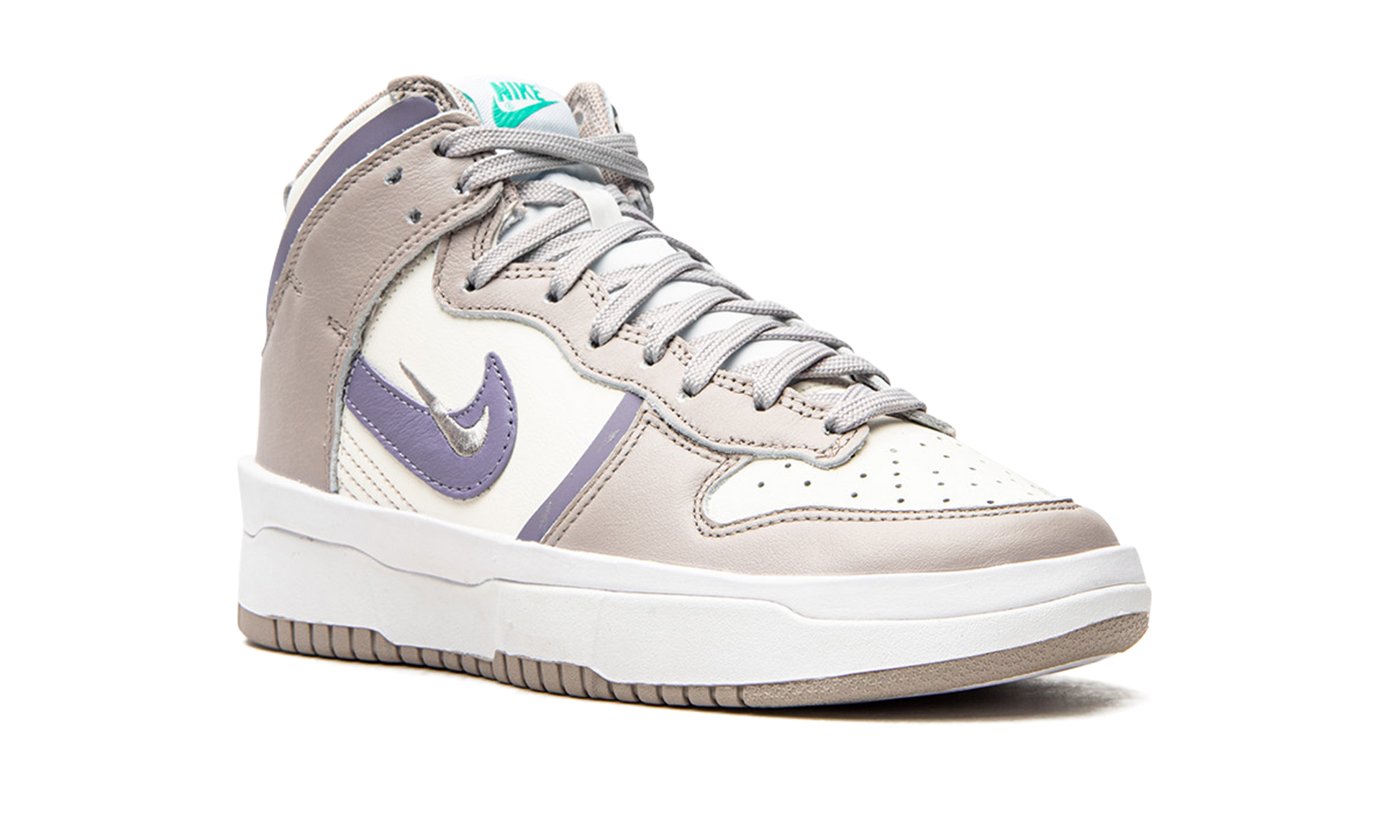 The Women’s Nike Dunk High Rebel “Iron Purple” is an August 2021 release of the updated version of the retro basketball shoe by Nike. This adventurous look for Nike’s Dunk Rebel model is complete with layered light tan and purple leather panels over a Sail leather base. A small silver Swoosh is embroidered over lavender Swoosh on both sides of the shoe. Turquoise “Nike” and Swoosh branding can be found on the tongue tag on the white nylon tongue. Additional details include Iron Purple laces, a layered white rubber midsole, and tan outsole. Release date: August 28, 2021 Iron Purple