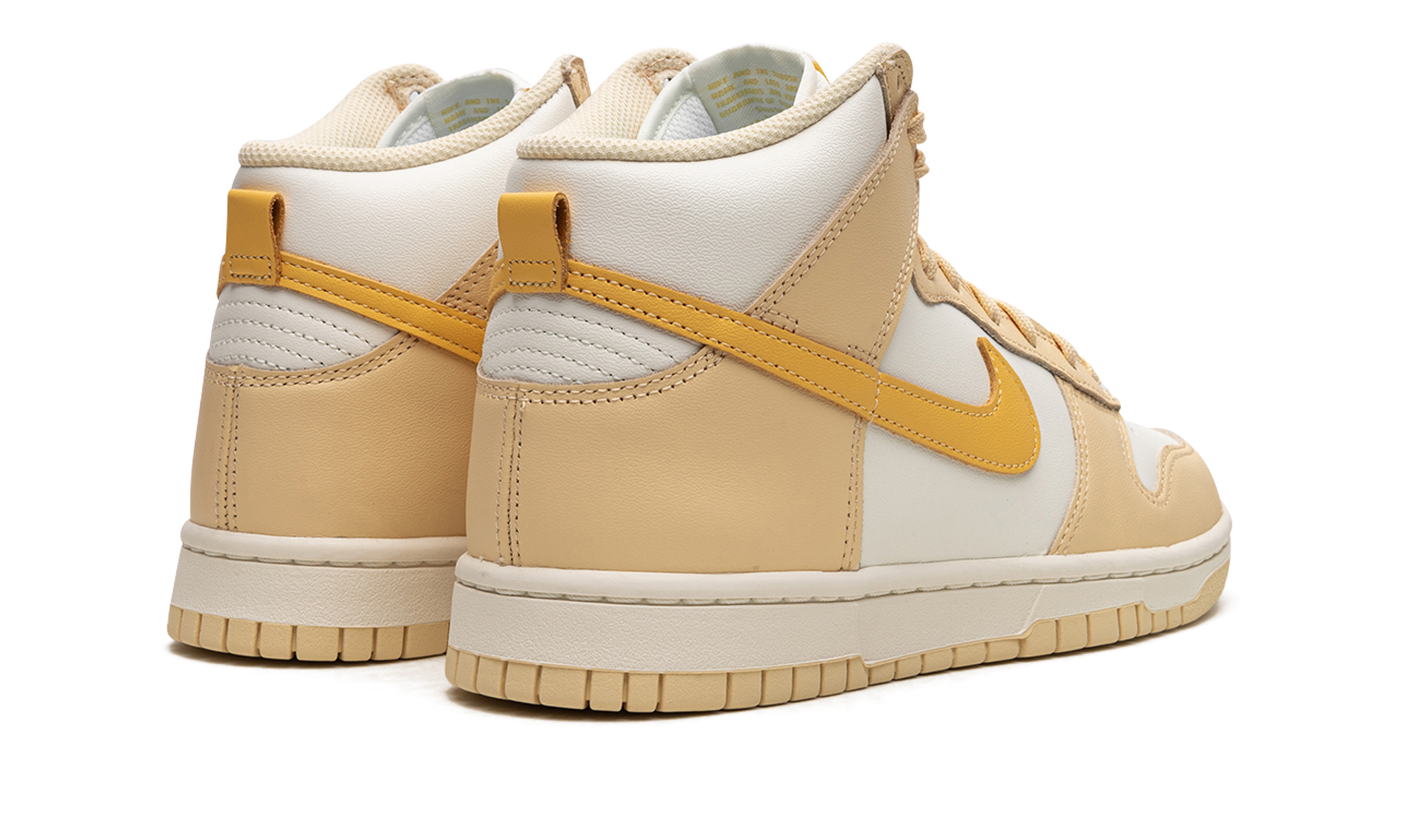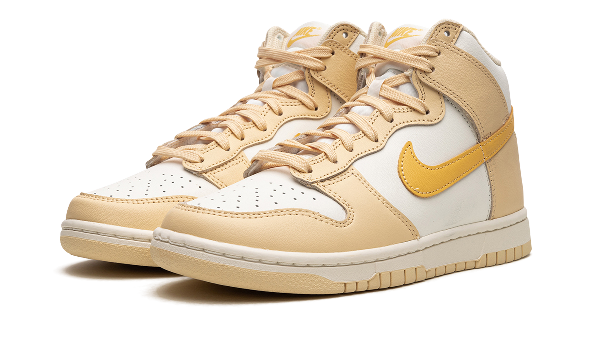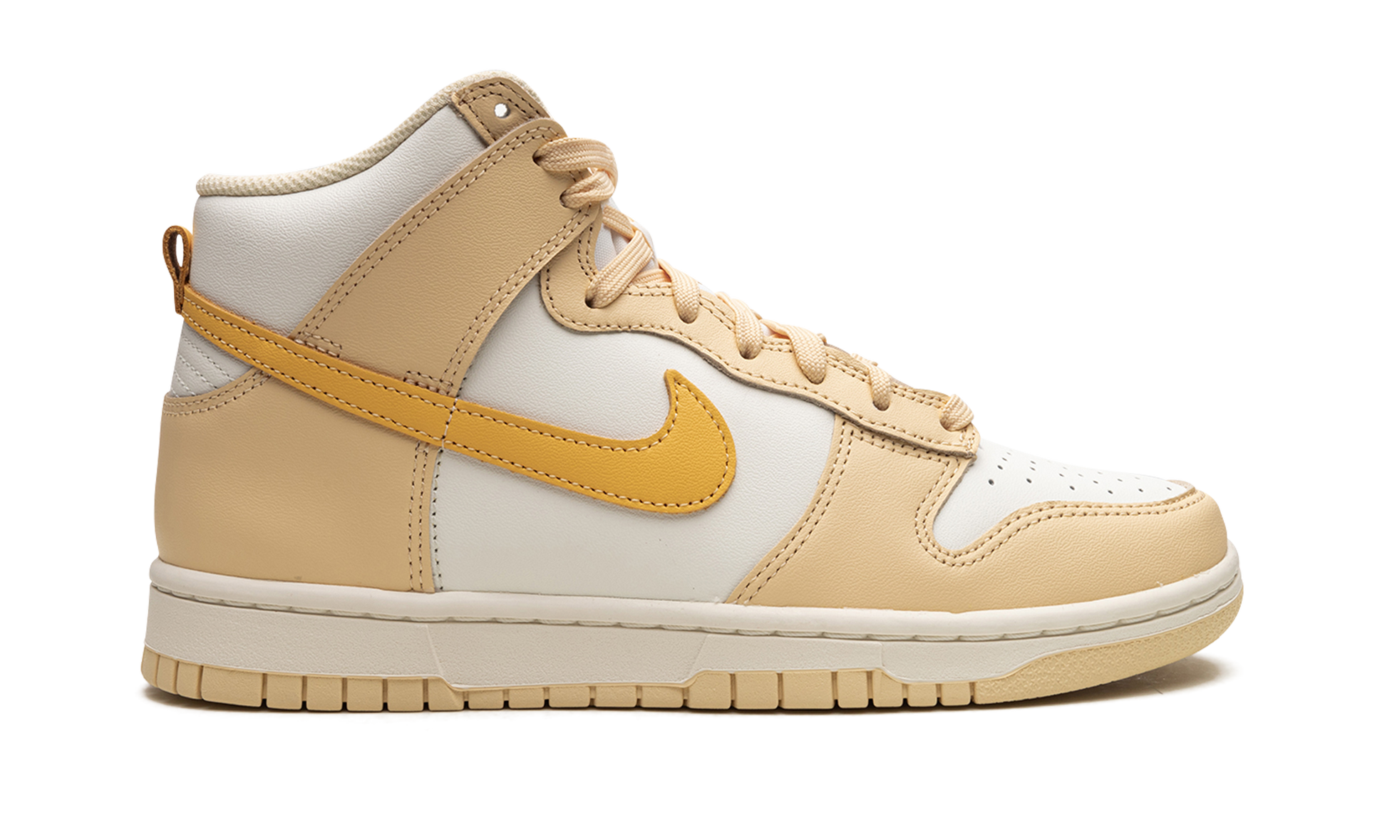 The Women’s Nike Dunk High “Pale Vanilla” is a women’s-exclusive colorway of the popular retro basketball and lifestyle shoe with a spring and summer vibe. The “Pale Vanilla” features a white leather base with Pale Vanilla leather overlay panels. A Topaz Gold leather Swoosh can be found on both sides of the shoe. The orange-gold hue also appears on the “Nike” and Swoosh branding on the tongue tag. Underfoot, a white midsole and Pale Vanilla rubber outsole put the finishing touches on this Dunk High in women’s sizing. Release date: March 14, 2023 Pale Vanilla"