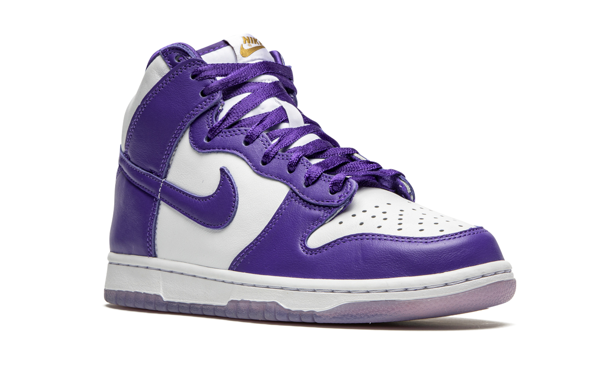 The Women’s Nike Dunk High SP “Varsity Purple” is a women’s colorway inspired by Nike’s former Co.Jp “City Pack” collection of Dunks from 1999. The “Varsity Purple” Dunk High retains many of the details that made the original Japan exclusive “City Pack” look one of the most sought after Dunks in history. A combination of white and purple leather highlight the design of the shoe. The same hue of Varsity Purple leather that appears on the forefoot, eyelets, and heel is used on the Swoosh branding on the mid-panel. The white nylon tongue features Metallic Gold Nike accenting on the tonal leather tongue tag. A white midsole and contrasting translucent purple outsole finish off the look. Release date: December 3, 2020. Varsity Purple