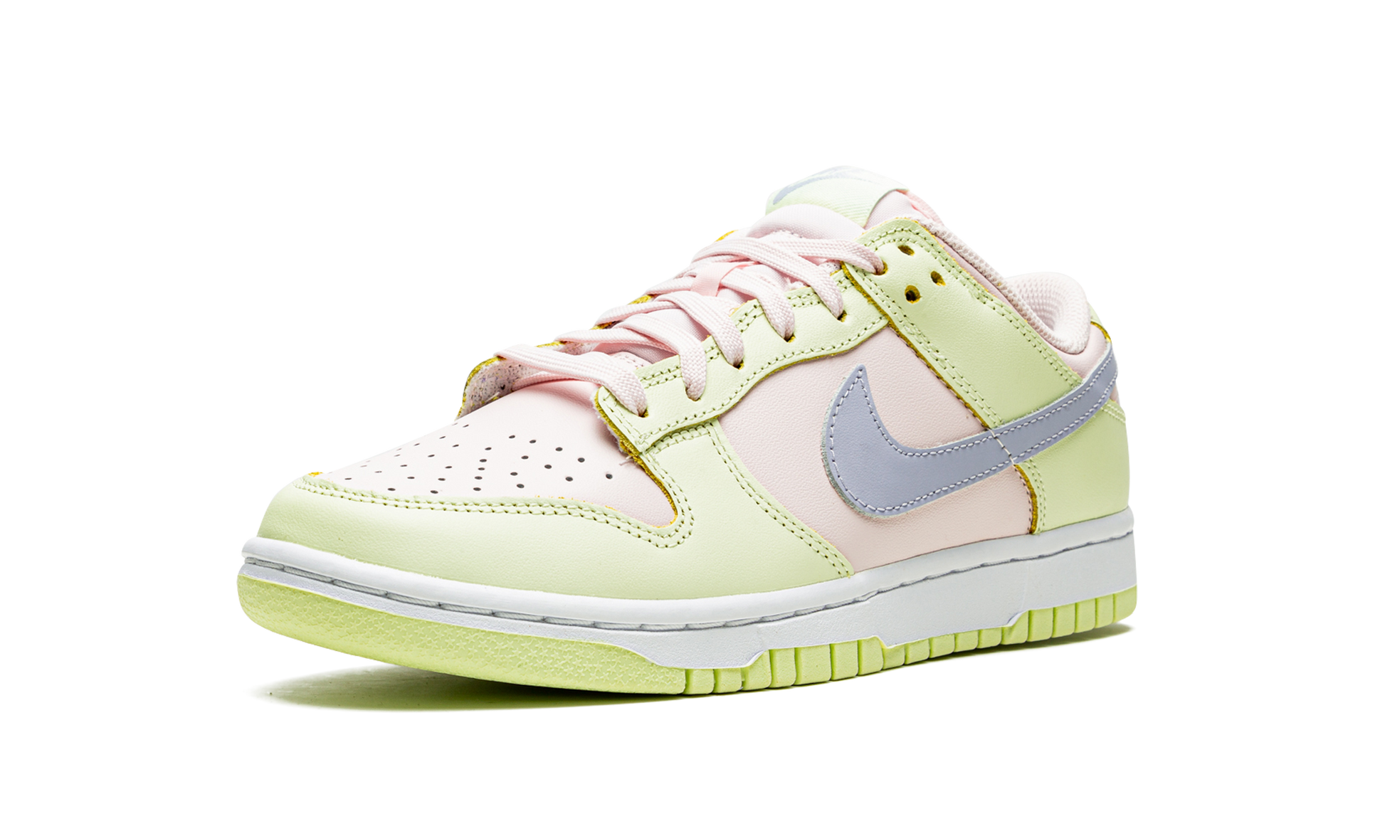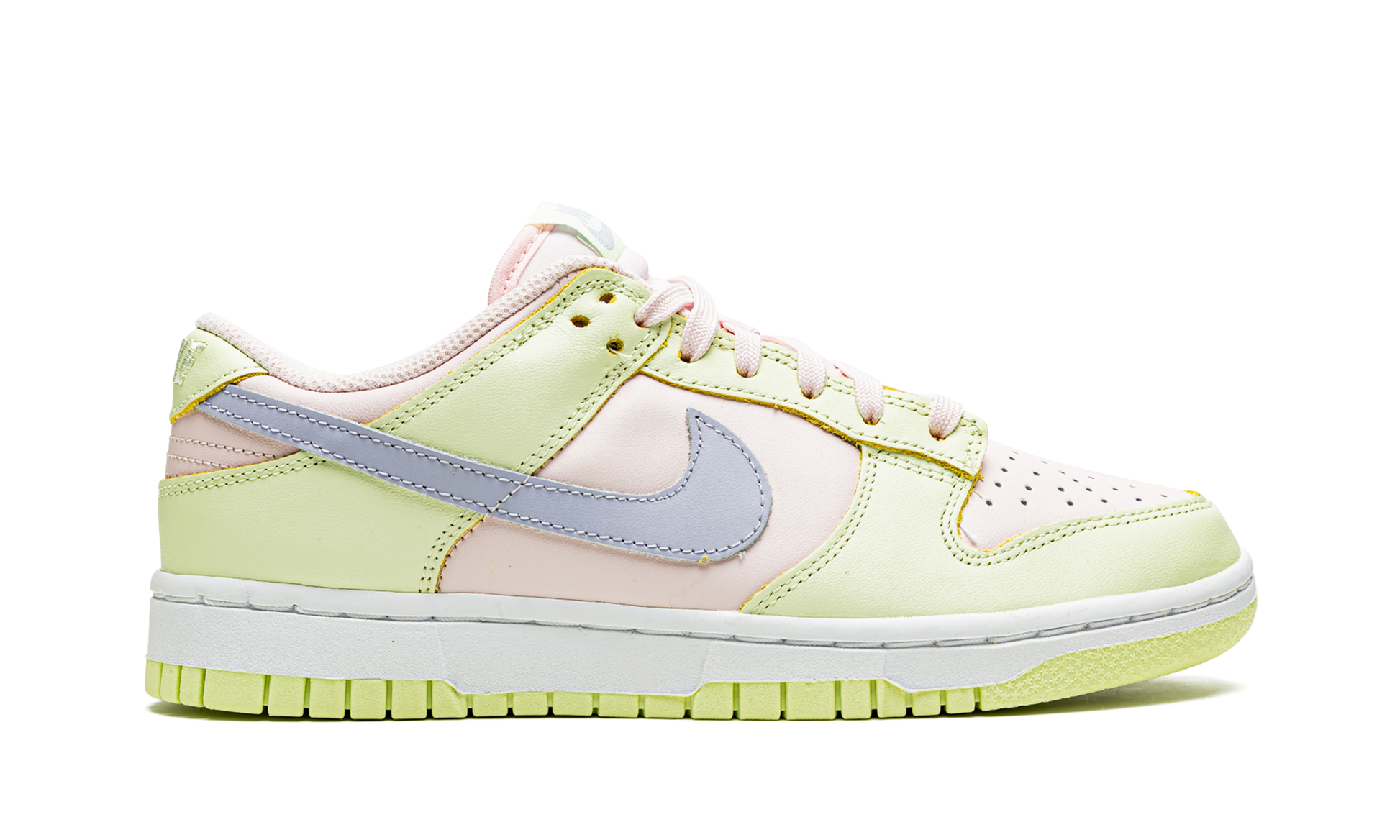 Yellow/soft pink/pale blue leather Dunk low-top sneakers from NIKE featuring panelled design, signature Swoosh logo detail, logo patch at the tongue, round toe, front lace-up fastening and flat rubber sole. These styles are supplied by a premium sneaker marketplace. Stocking only the most sought-after footwear, they source and curate some of the most hard to find sneakers from around the world.. Lime Ice