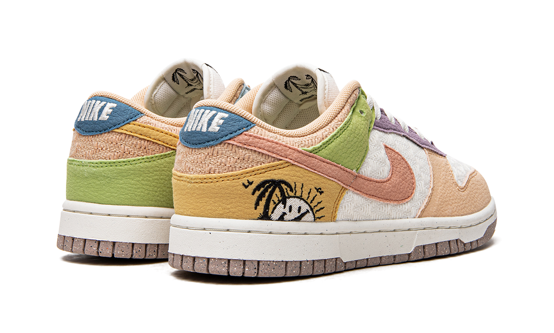 The Women’s Nike Dunk Low “Sun Club - Multicolor” is one of multiple summer-ready colorways from Nike’s “Sun Club” collection from 2022. Released in July 2022, this special edition Dunk updates the popular lifestyle shoe with a warm weather inspired moreover. The design features a white textile base with mismatched textured leather overlays in coral, powder blue, peach, lavender, and lime green. The Swoosh logos found on the sides of the shoe are also designed in a mismatched style. Nike supplies “Nike Sun Club” branding on the tongue, while the heel is treated to a fun smiling sun illustration. A Nike Grind outsole completes the colorful design. Release date: July 7, 2022 Sun Club