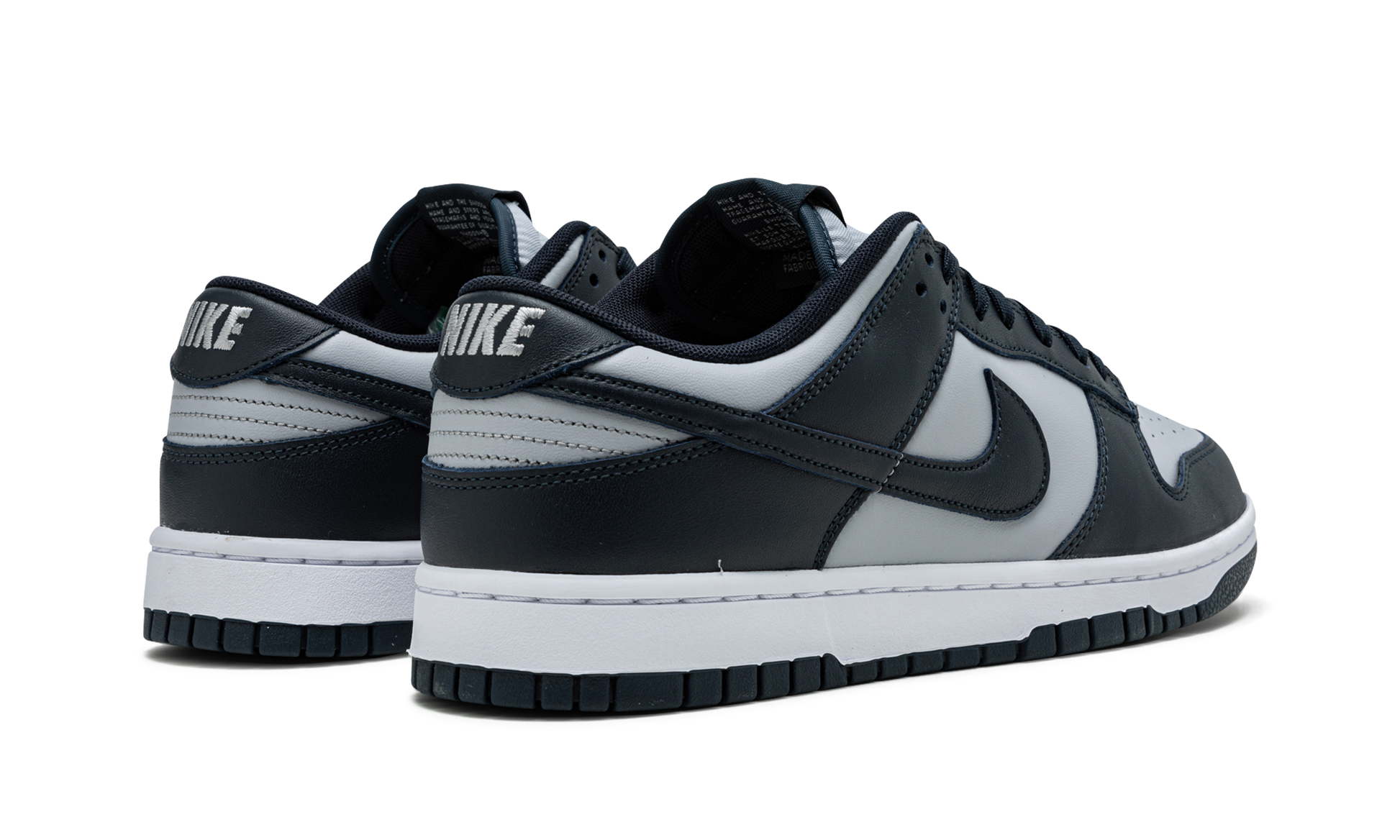 The Nike Dunk Low “Georgetown” is an semi-original colorway of the retro basketball shoe from Nike’s college basketball-inspired “Be True to Your School” collection of Dunks from 1985. We ay "semi-original" because the grey-and-navy color scheme originally appeared on the Nike Terminator from the same era as the original 1985 set of Dunks. For this “Georgetown” Dunk Low, grey leather appears on the perforated toe, mid-panel, collar, and heel. The forefoot, eyelets, collar, heel, and Swoosh are dressed in Midnight Navy leather. Grey “Nike” branding is embroidered on the back and printed on the navy blue tongue tag with a Swoosh logo. Finishing touches include Midnight Navy laces, a white rubber midsole, and a navy blue outsole. Release date: November 5, 2021 Georgetown