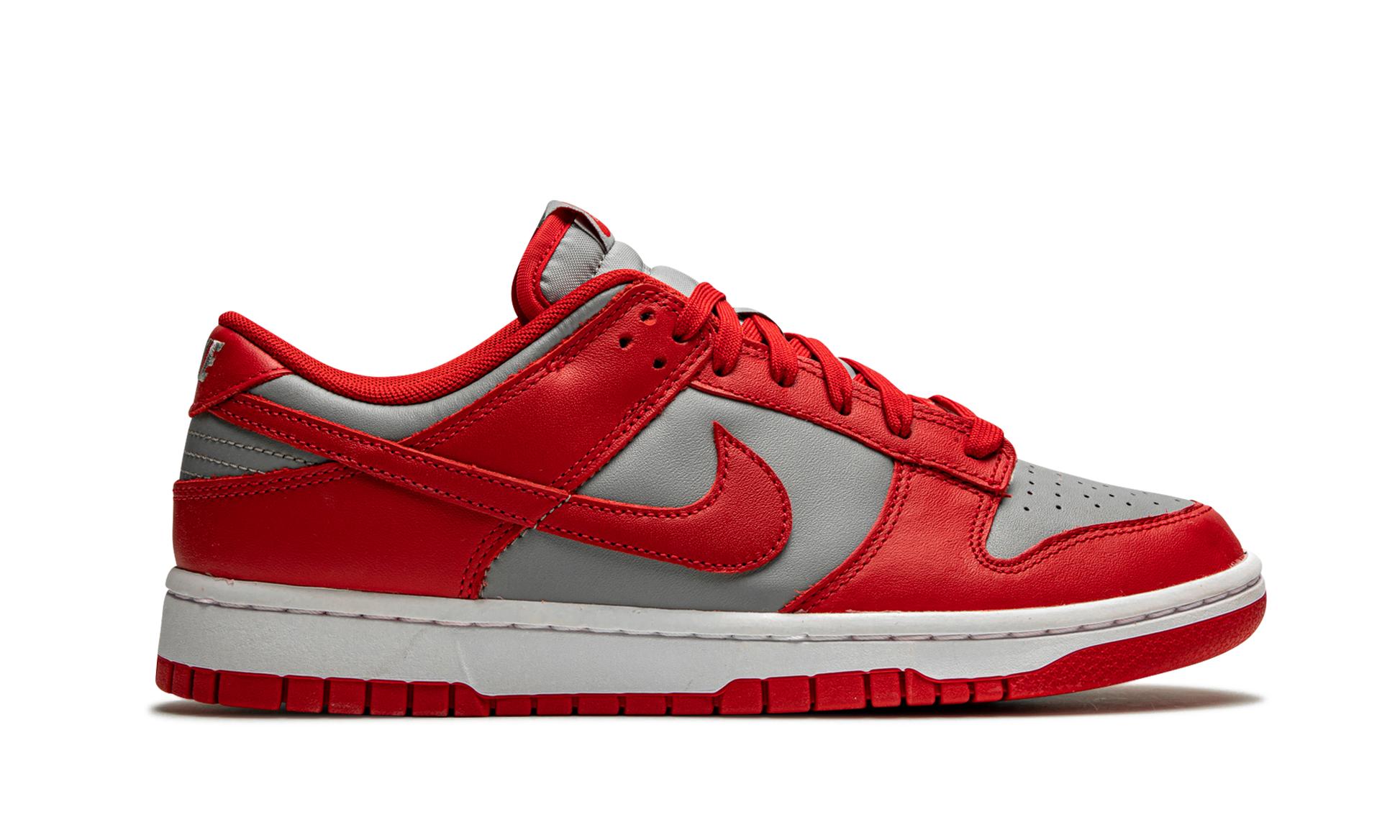 The Nike Dunk Low “UNLV” is an original colorway of the former performance basketball shoe that was included in 1985’s “Be True to Your School Pack.” Returning in January 2021, the “UNLV” references the makeup of the Dunk made exclusively for the UNLV Runnin’ Rebels basketball team during the model’s initial product cycle in the ‘80s. As for this contemporary re-release, Nike keeps the original look intact, and the results are clearly favorable. Varsity Red leather overlays can be found on the forefoot, toe cap, eyelets, and heel. The Las Vegas-area school’s Vast Grey hue appears on the perforated toe, mid-panel, collar, and heel. Additional red accenting is located on the leather Swoosh branding that appears on either side and on the heel counter and shoe laces. Grey “Nike” embroidery is stitched onto the back of the shoe. A thin nylon tongue displays classic Nike Air branding to complete the look. Release date: January 14, 2021. UNLV