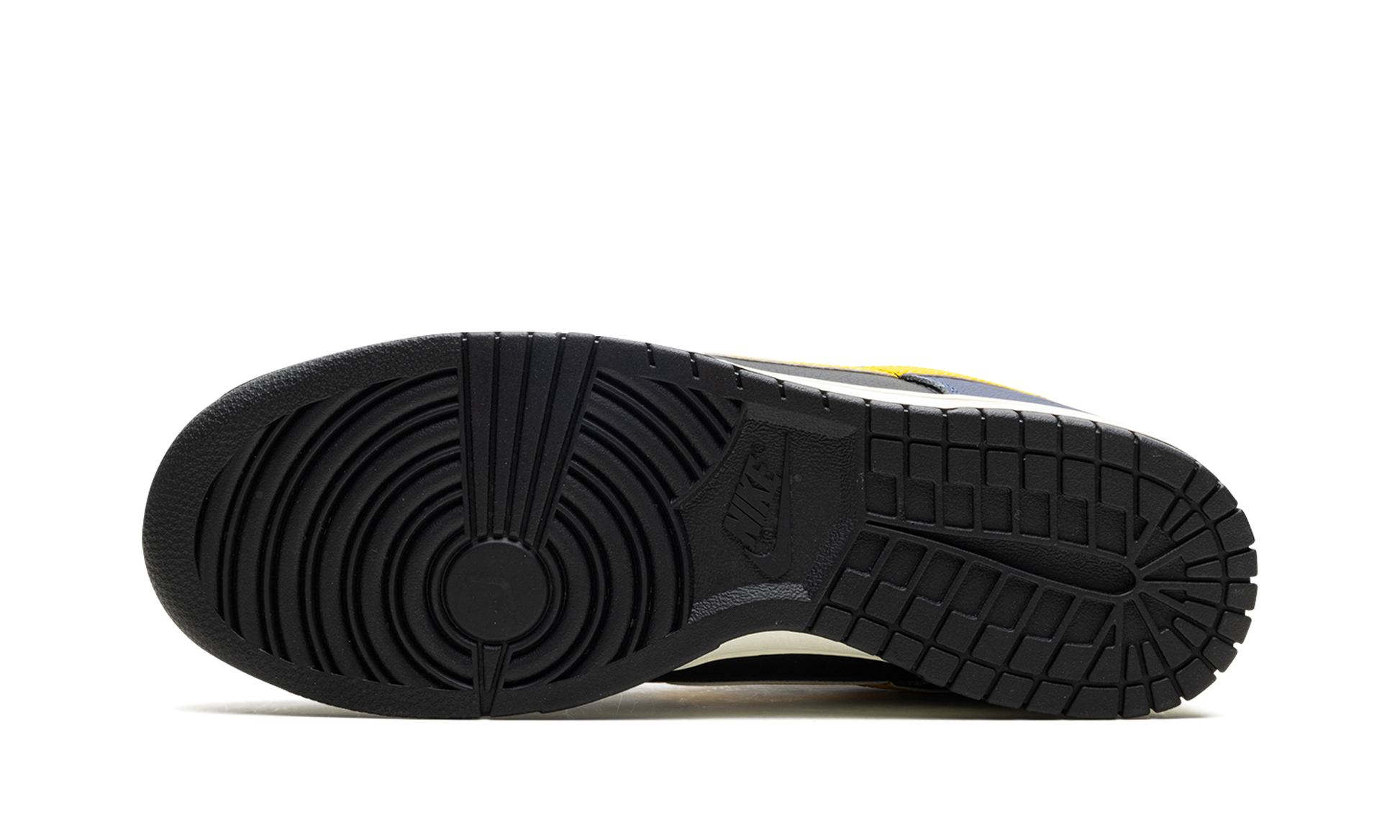 The Nike Dunk Low Vintage "Michigan" is a colorway of the classic basketball shoe with an aged aesthetic loosely inspired by the Michigan Wolverines college basketball team. The Nike Dunk was released in a “Michigan” colorway in 1985 and, here, the shoe informs the colors and design of the Dunk Low Vintage “Michigan.” Specifically, the upper has a black leather base and Midnight Navy leather overlays. A Varsity Maize leather Swoosh appears on the sides, while a yellow “Nike” logo is embroidered on the heel. The collar is designed with an aged, cracking aesthetic that suggests the look of prolonged wear. Underfoot, a Sail rubber midsole completes the look. Release date: February 1, 2024 Michigan