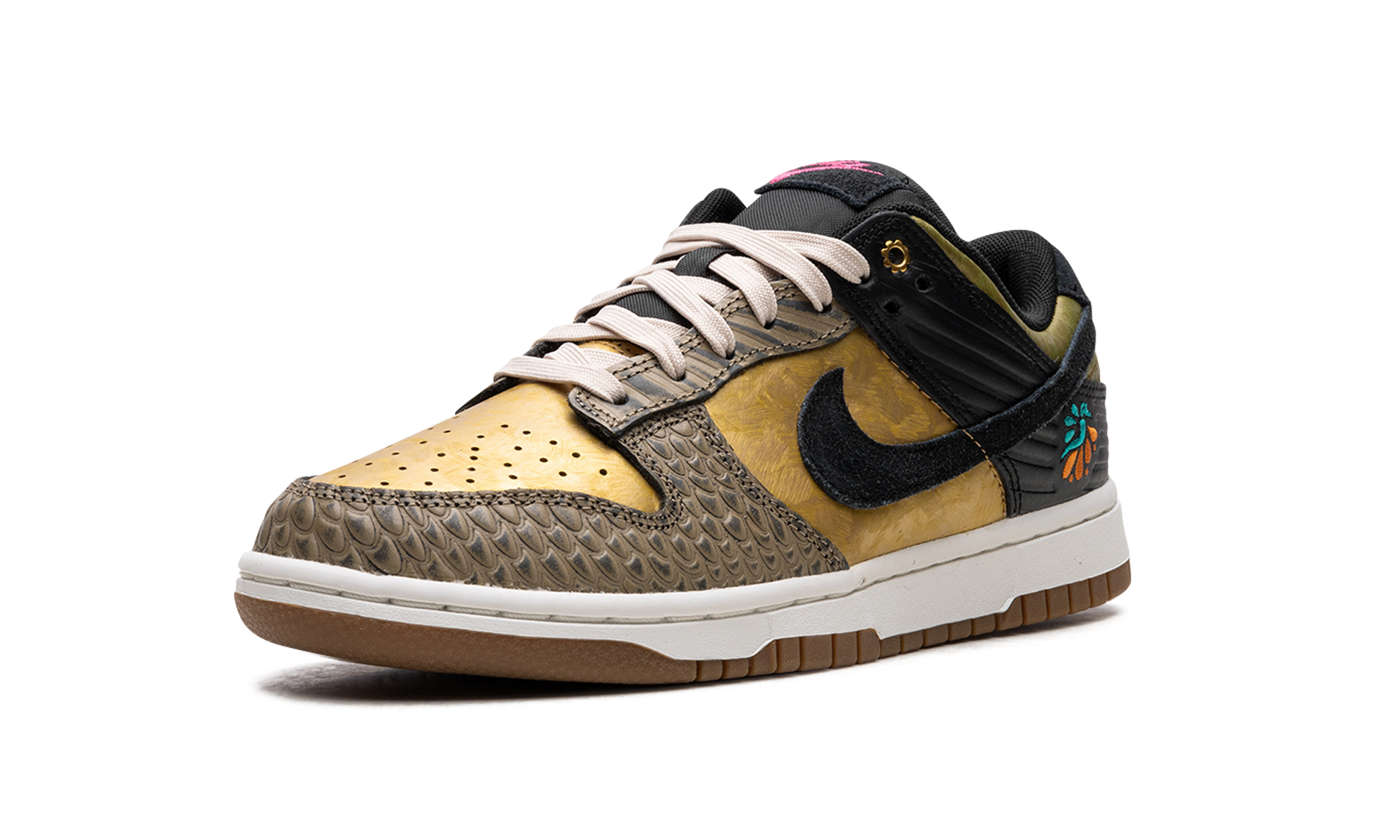The Women’s Nike Dunk Low "Diá de Los Muertos" is a women’s-exclusive colorway of the retro basketball shoe inspired by the traditional Mexican holiday. Diá de Los Muertos is an event that is commonly held in Mexico that reunites the living and the dead through ofrendas, which are offerings created by families for their departed family members. Here, the Dunk Low “Diá de Los Muertos” encapsulates the essence of the hummingbird and marigold, both of which are central to Diá de Los Muertos folklore. The shoe has a gold leather base with textured overlays inspired by the textures and symbols of Diá de Los Muertos. Release date: October 21, 2023 Dia De Los Muertos