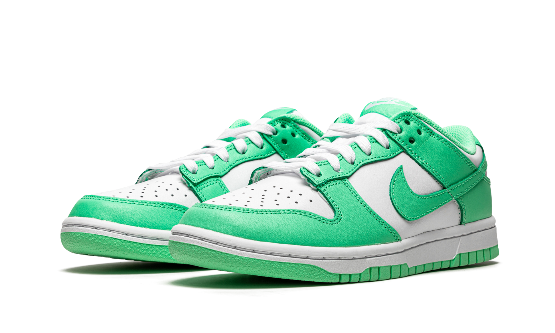 The Women’s Nike Dunk Low “Green Glow” is a women’s exclusive, springtime-ready colorway of the retro basketball, skateboarding, and lifestyle shoe. The “Green Glow,” one of several Women’s Dunks released by Nike in 2021, displays the model’s signature two-tone color block that was popularized by the original “Be True to Your School” collection of college basketball inspired Dunks from 1985. Here, crisp white leather can be found on the design’s perforated toe and on the mid-panel, collar, and heel. Overlaid leather panels in Green Glow appear on the forefoot, eyelets, heel, and Swoosh branding. A mint green nylon patch with classic “Nike” branding is stitching onto the white nylon tongue and white “Nike” embroidery appears on the heel. A white midsole and Green Glow outsole finish off the look of this Nike Dunk fitted in women’s sizing. Release date: April 16, 2021. Green Glow