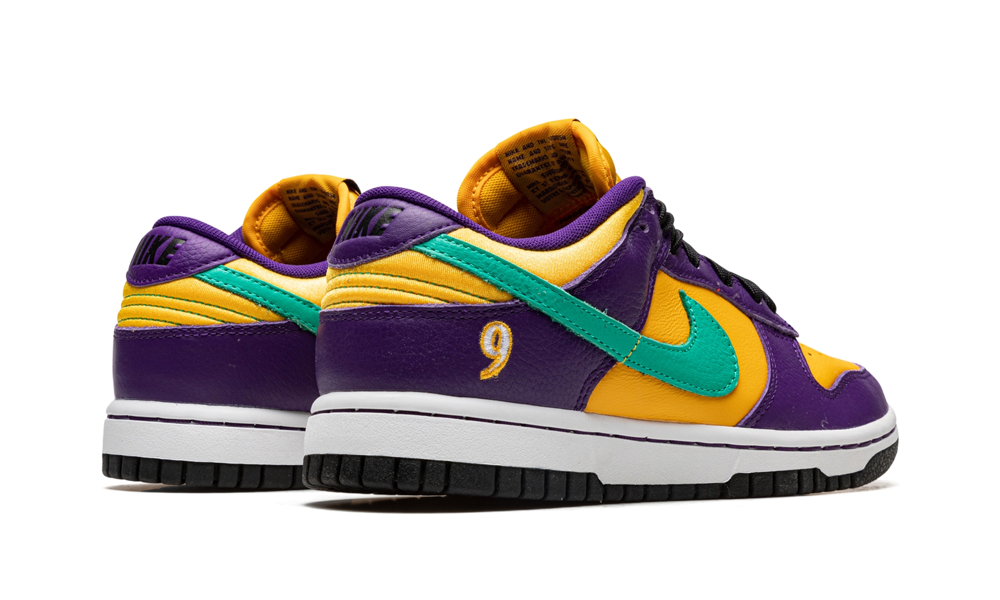 The Nike Dunk Low “Lisa Leslie” is a special edition colorway that celebrates the 20th anniversary of the legendary Los Angeles Sparks’ basketball player who became the first woman to dunk in a WNBA game. Leslie, who was an original member of the Sparks and WNBA from the league’s beginning in 1997, is immortalized on the Dunk by combining the Sparks’ team uniform colors with her “9” jersey number on its design. Specifically, the perforated toe, mid-panel, collar, and heel are designed in yellow leather. The overlays appear in purple leather. A green leather Swoosh is found on either side. As mentioned, Leslie’s “9” jersey number is embroidered on the lateral side of the heel. Classic “Nike” branding is found on both the heel and tongue tag. Release date: July 9, 2022 Lisa Leslie