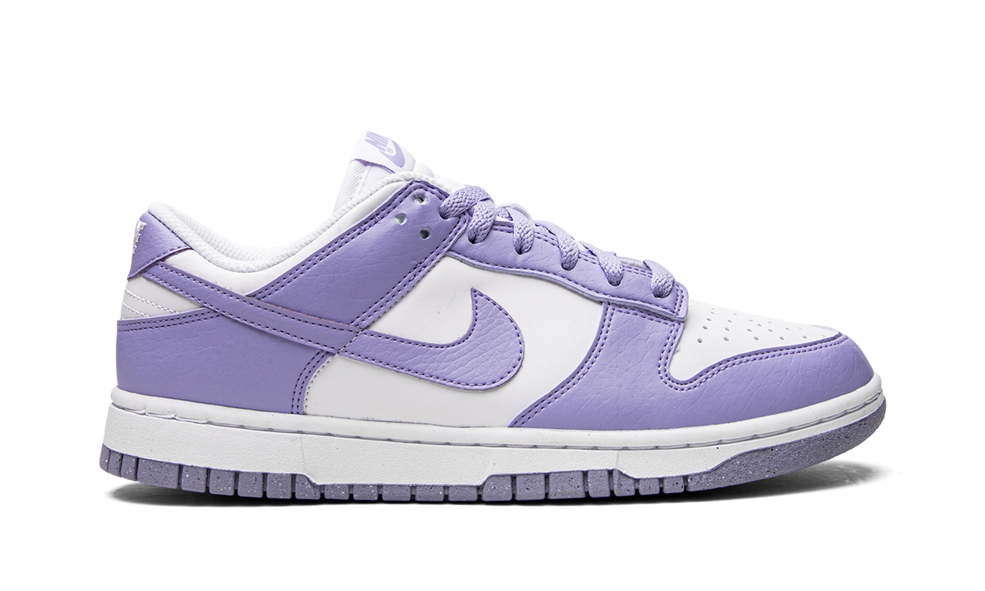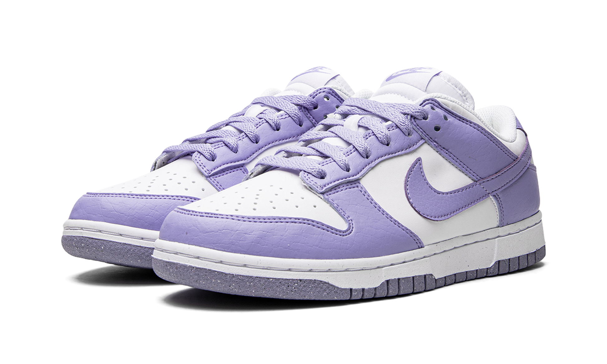 The Women’s Nike Dunk Low Next Nature “Lilac” is a women’s-exclusive colorway of the vintage basketball shoe made from at least 20% recycled content by weight. The eye-pleasing “Lilac” colorway was released as part of the “Move to Zero” campaign by Nike that aims to reduce the brand’s carbon footprint. The shoe features a white leather base with Lilac-colored leather overlays and Swoosh branding. White “Nike” embroidery appears on the heel. Lilac “Nike” and Swoosh detailing can be found on the tongue tag. The shoe’s design is rounded into form with a white rubber midsole and Lilac outsole with speckle detailing. The outsole is made from Nike’s sustainable Grind rubber. Release date: July 16, 2022 Next Nature Lilac