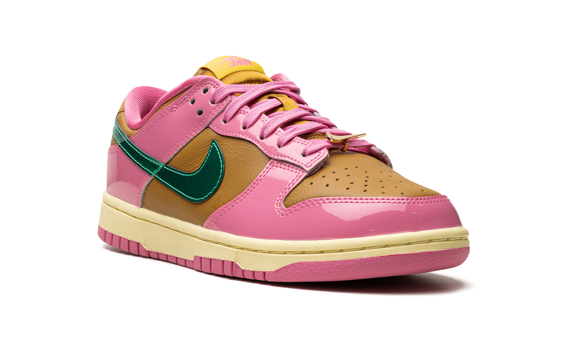 The Parris Goebel x Women’s Nike Dunk Low is a collaboration by the popular choreographer on a women’s-exclusive version of the retro basketball shoe. The Dunk Low by Parris Goebel features a colorful appearance with Bronzine-colored leather on the shoe’s base and shiny pink patent leather for the overlays. An emerald green leather Swoosh appears on either side of the shoe while a gilded Swoosh emblem is seen on the vamp. Upside down Swoosh branding is located on the tongue tag and on the heel. Underfoot, the shoe’s aged-looking midsole is matched with a pink rubber outsole. Release date: October 9, 2023 Parris Goebel
