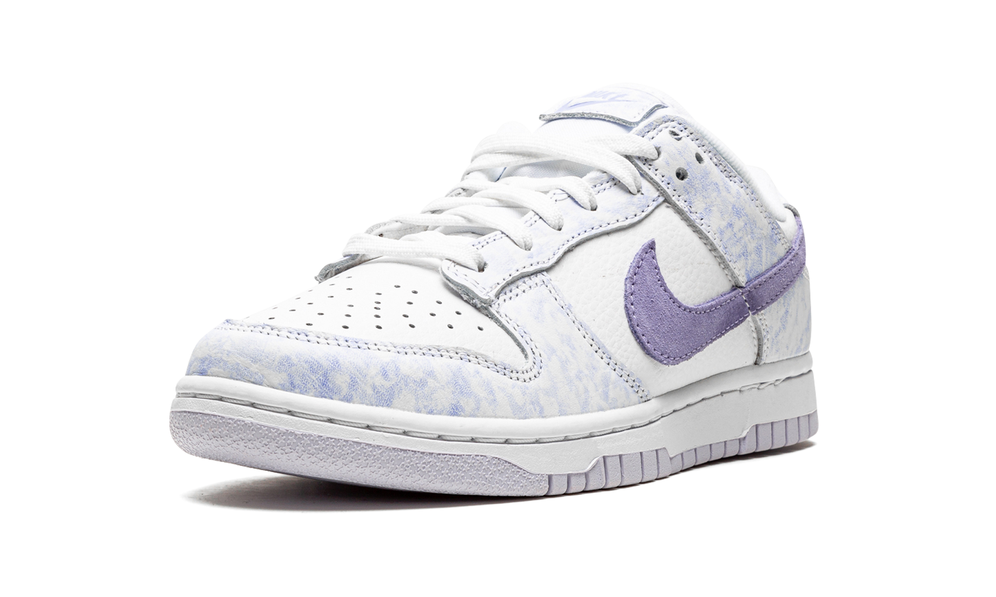White/purple leather Dunk Low "Purple Pulse" sneakers from NIKE featuring signature Swoosh logo detail, embroidered logo to the rear, contrasting panel detail, round toe, front lace-up fastening, logo patch at the tongue, branded insole and rubber sole. These styles are supplied by a premium sneaker marketplace. Stocking only the most sought-after footwear, they source and curate some of the most hard to find sneakers from around the world.. Purple Pulse