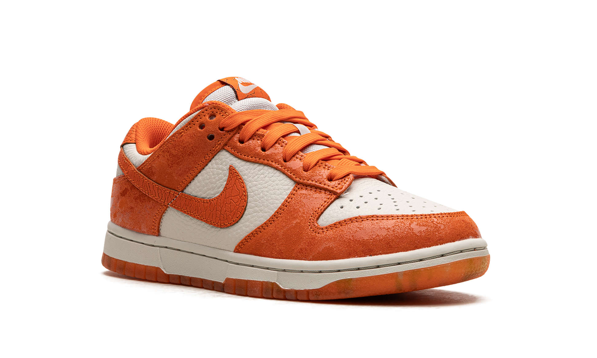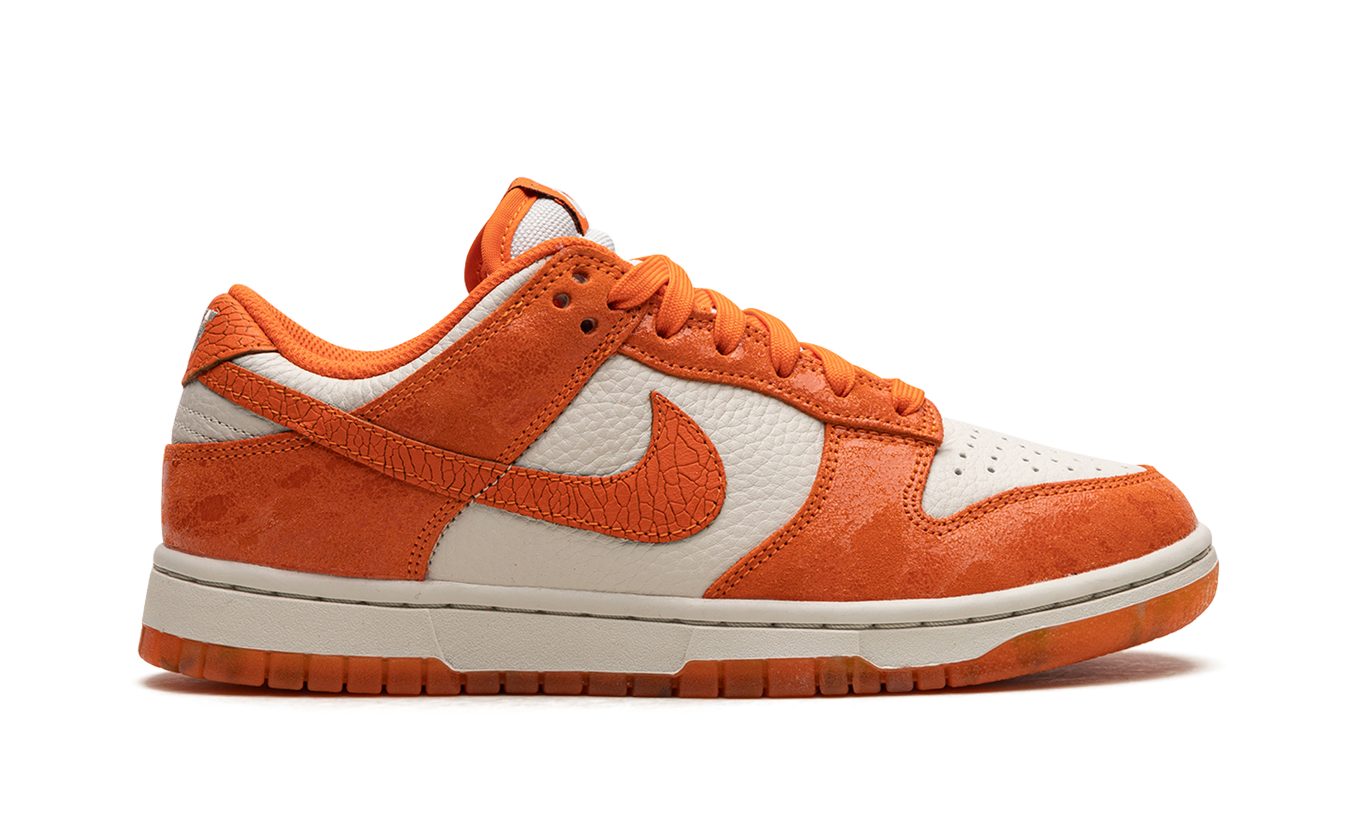 The Women’s Nike Dunk Low "Total Orange" is a women’s-exclusive colorway of the classic basketball shoe that resembles the model’s “Syracuse” style, but with an updated look. Inspired by the “Syracuse” Dunk from the “Be True to Your School” pack from 1985, the “Total Orange” has the same white-and-orange color scheme as the former colorway, but with cracked leather overlays and Swoosh branding. The base layer is designed in Light Bone leather. Classic “Nike” branding is embroidered on the heel and on the tongue tag. Underfoot, the white rubber midsole is paired with an orange semi-translucent rubber outsole. Release date: August 12, 2023 Total Orange