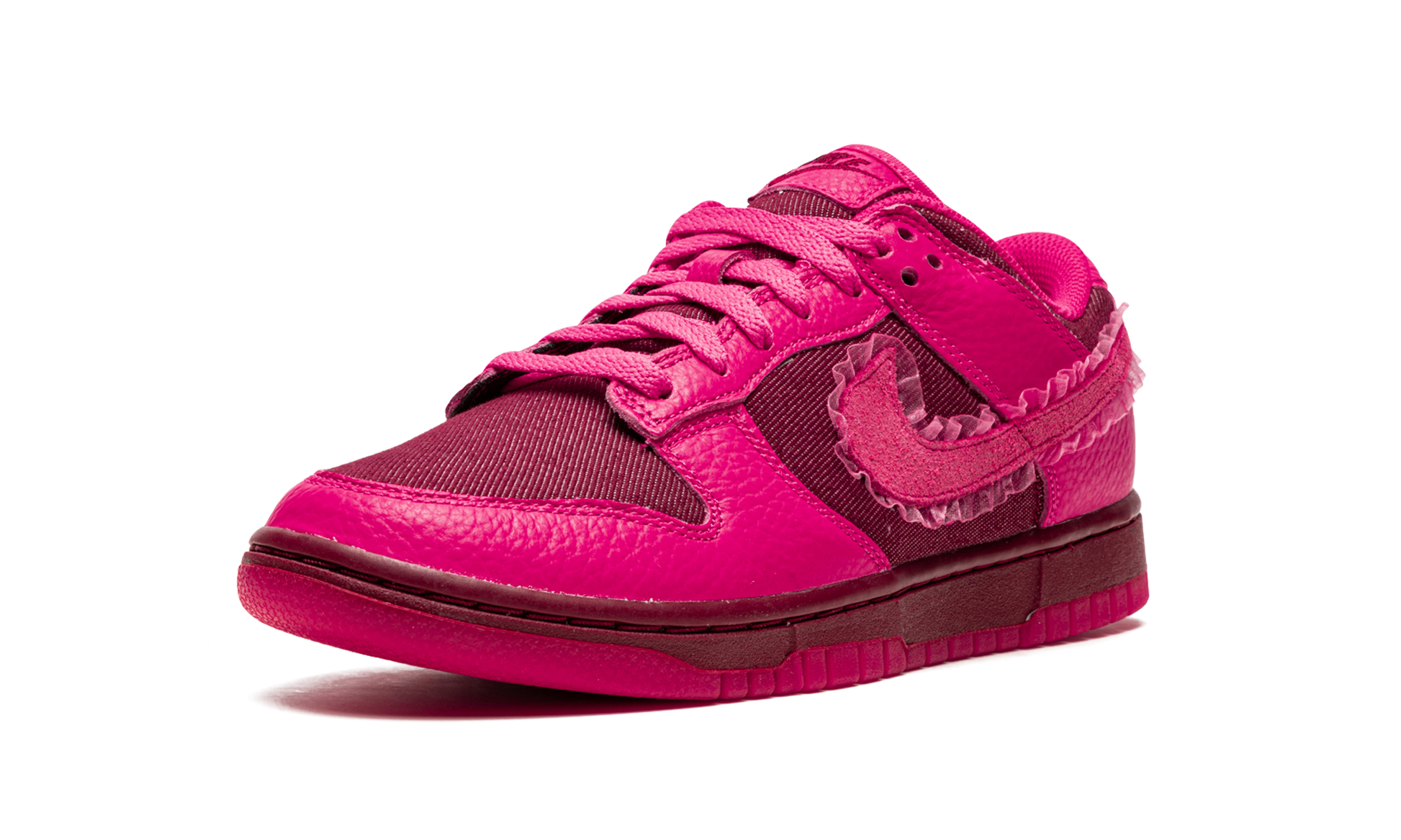 The Women’s Nike Dunk Low “Valentine’s Day” is a women’s-exclusive release of the classic sneaker in a unique colorway that pays homage to Valentine’s Day. A February 2022 release, the “Valentine’s Day” version of the Dunk Low succeeds popular Dunks that have shown love to the holiday before it, including StrangeLove Skateboards’ collaboration with the Nike SB Dunk in 2020. This “Valentine’s Day” Dunk features a maroon canvas base with pink tumbled leather overlays. A pink suede Swoosh can be found on either side of the shoe and pink “Nike” branding is stitched onto the heel. Adding a fun, creative look to the shoe, sheer underlays appear beneath the Swoosh logos on the mid-panel. A two-tone, maroon midsole and pink rubber outsole complete the festive design. Release date: February 12, 2022 Valentine’s Day