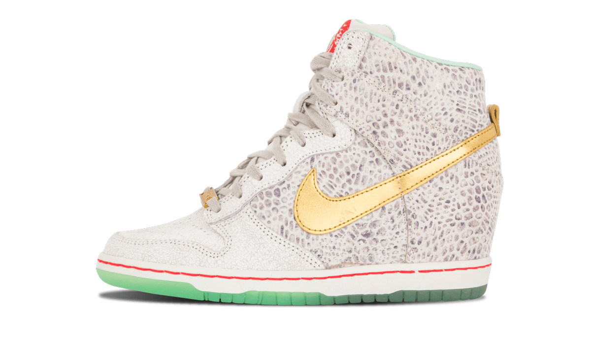 A special colorway for the Year of the Horse in 2014, the women’s Dunk Sky High Wedge gets a premium construction featuring gold detailing and a jade green outsole. Year Of The Horse