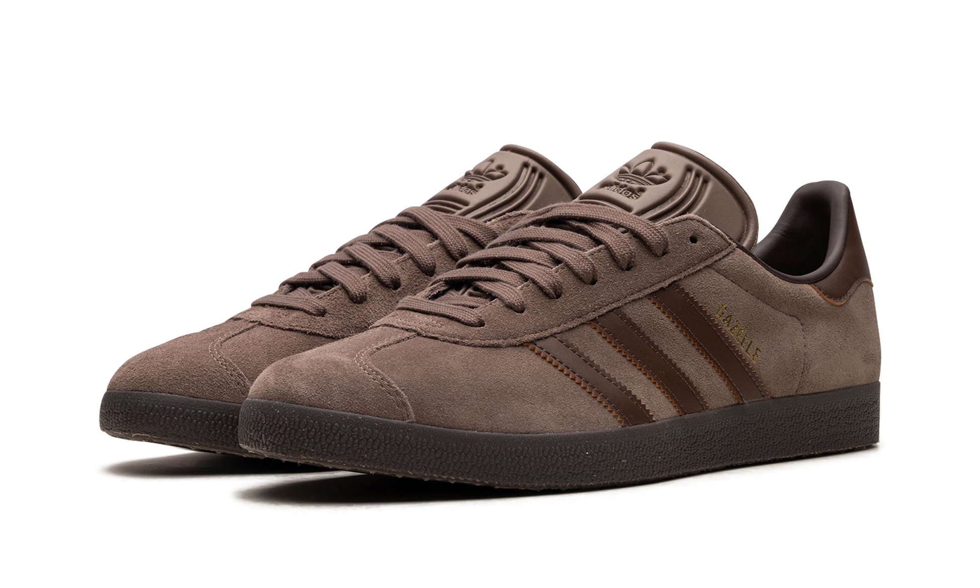 The adidas Gazelle “Earth Strata/Brown” is an all-brown colorway of the retro sneaker. The popular silhouette by the German footwear company features a brown suede construction with slightly darker brown leather Three Stripes branding on each side of the shoe. Gold “Gazelle” detailing appears on the lateral side of the mid-panel, while an adidas Trefoil logo is printed tonally on the brown leather heel tab. A debossed adidas Trefoil logo can be seen on the brown tongue. Underfoot, a dark brown rubber sole completes the look. Earth Strata Brown Gum