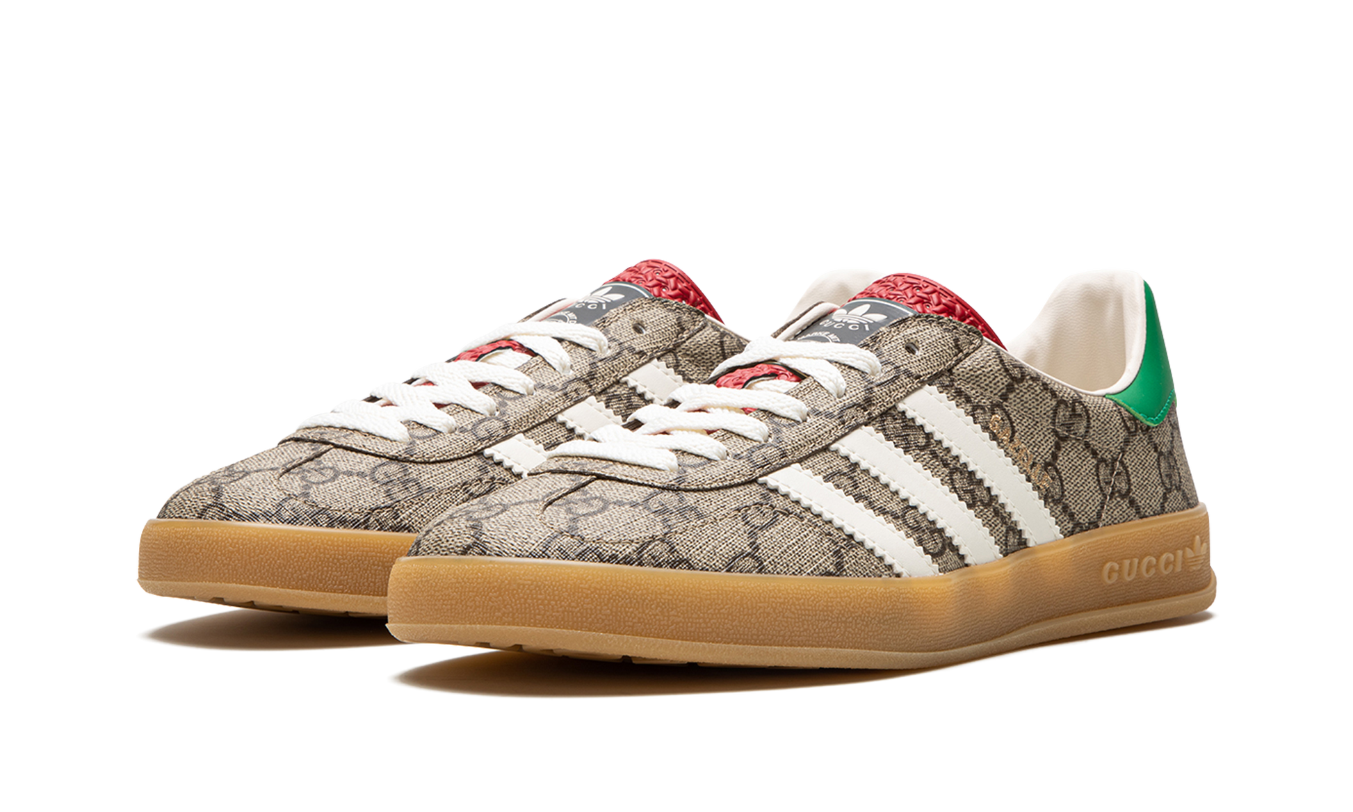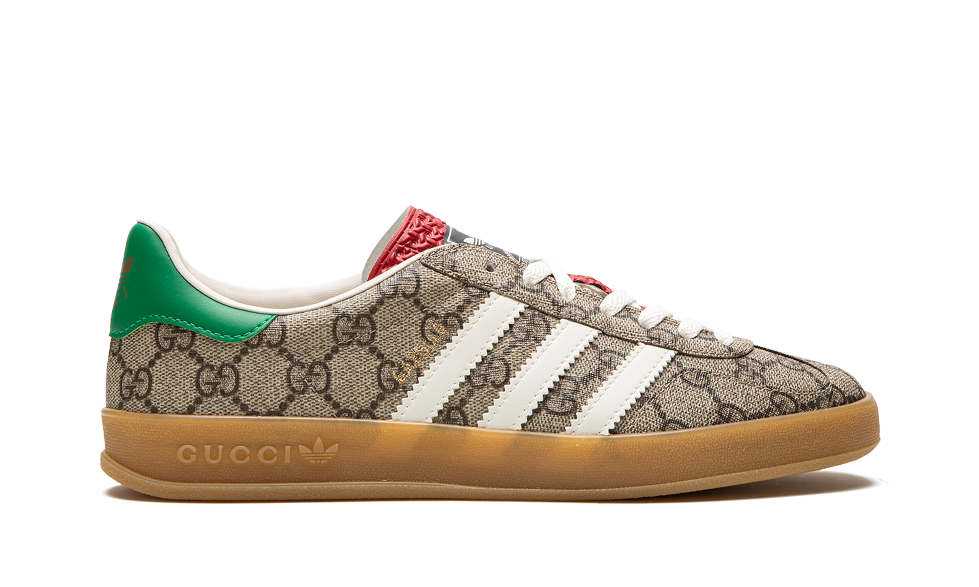 The Gucci x adidas Gazelle “Beige” is a limited edition collaboration by the legendary high fashion house on the popular lifestyle sneaker that features the brand’s iconic monogram pattern. Gucci and adidas’s second collaboration brings a luxurious twist to the adidas Gazelle by placing the former’s “GG” monogram print in an all-over style on the shoe’s canvas upper. The look is inspired by 1980s-era sportswear aesthetics. Black leather Three Stripes branding can be found on either side of the shoe while gold co-branding appears on the black leather heel tab. Additional co-branding is found on the tongue. “GG” embossed branding appears on the gum rubber midsole. Release date: March 31, 2023 Gucci - GG Monogram - Beige