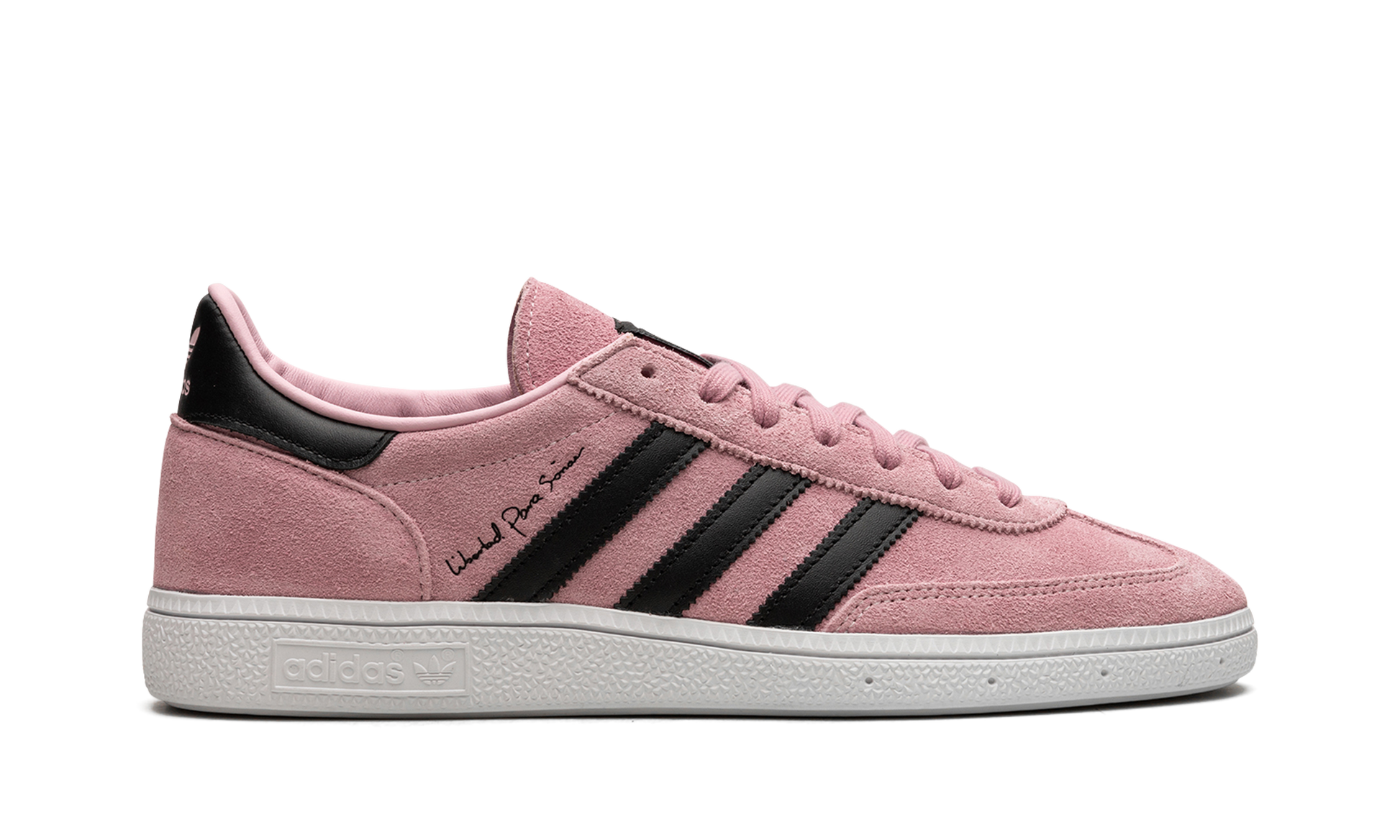 The Inter Miami CF x adidas Handball Spezial is a collaboration between the Miami, Florida based soccer team and adidas on the retro sneaker. From a collection by Inter Miami CF and adidas that also includes apparel options, the adidas Handball Spezial features the soccer team’s uniform colors on its design for an intriguing look. The upper is complete with a pink suede construction with tonal suede overlays on the toe and heel. Contrasting black leather Three Stripes branding appears on either side of the shoe. Co-branding can be found on the tongue. Underfoot, a white rubber sole completes the look IMCF