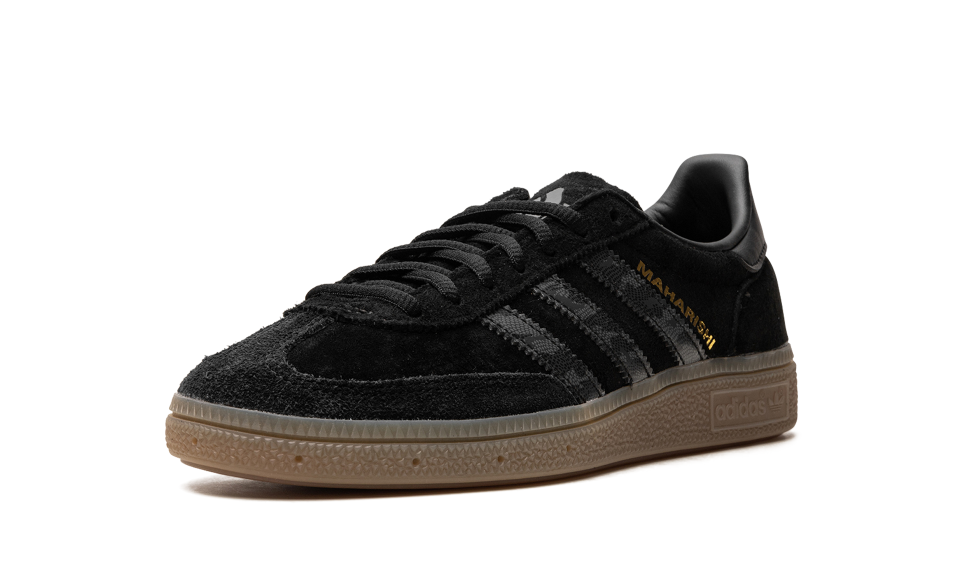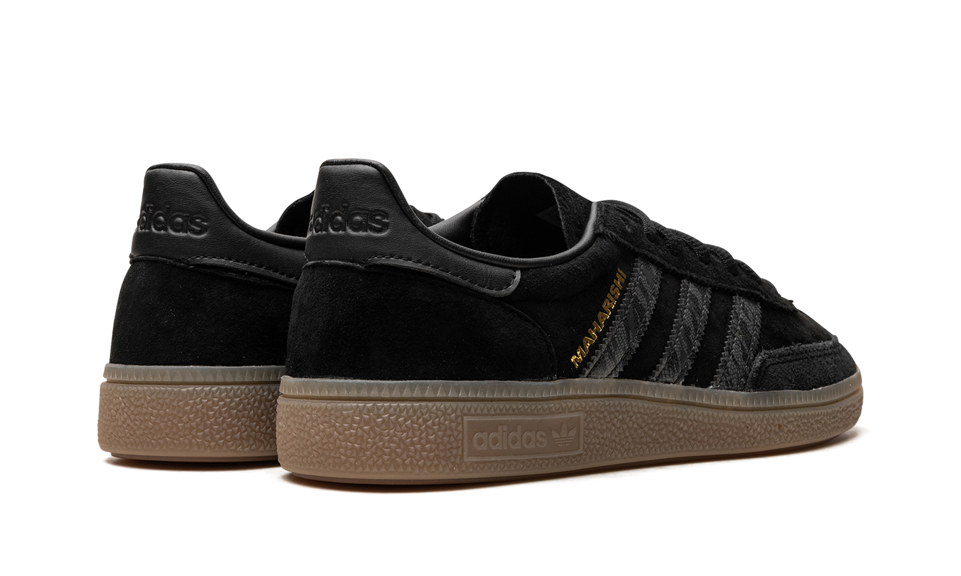 The Maharishi x adidas Handball Spezial "Black/Gum" is a collaboration by the London-based clothing brand and adidas on the retro-inspired sneaker. Originally released in 1979 for handball players, the adidas Handball Spezial is now beloved for its timeless look and easy-to-wear style. Here, Maharishi updates the silhouette with a black suede construction with tonal leather Three Stripes and gold “Maharishi” branding on the side. A subtle snakeskin texture is also added to the Three-Stripes on each side. More “Maharishi” branding can be found on the tongue, as well. Underfoot, a gum rubber sole gives the sneaker a vintage flair. Release date: October 14, 2023 maharishi - Black Gum