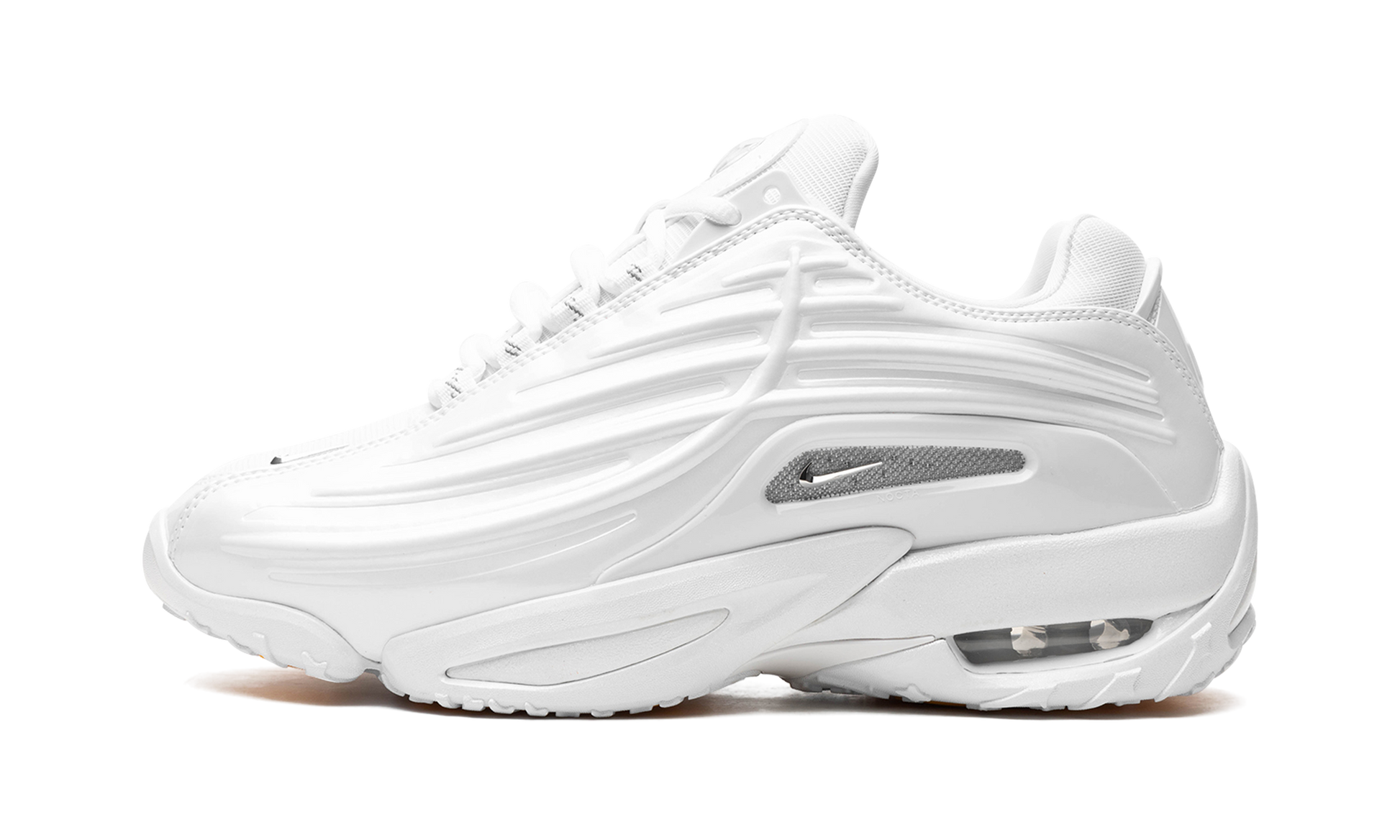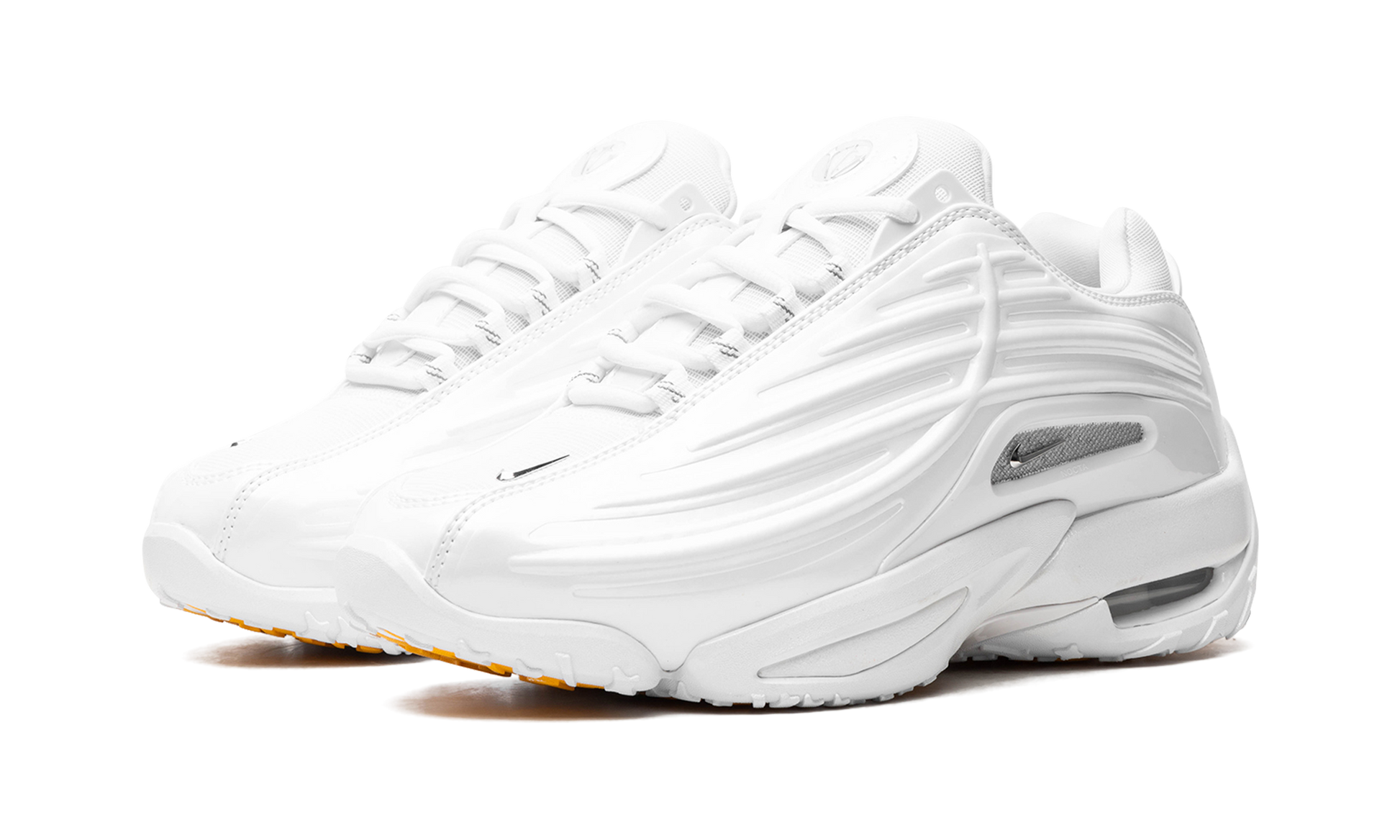 The NOCTA x Nike Hot Step 2 "White" is an all-white colorway of the second version of Drake’s signature shoe with Nike. The Nike Hot Step was Drake’s first-ever collaboration with Nike following several successful projects with Jordan Brand. In 2024, the Nike Hot Step 2 was released as a follow-up to the first collaboration. The “White” has White mesh on the toe, tongue, and heel and tonal synthetic, concave overlays on the sides. A chrome midfoot panel breaks up the shoe’s monochromatic orange appearance, while various Swoosh logos appear throughout the design. “NOCTA” branding is seen on the tongue. An Air cushioning unit is secured in the heel of the midsole. Release date: May 9, 2024 NOCTA - White