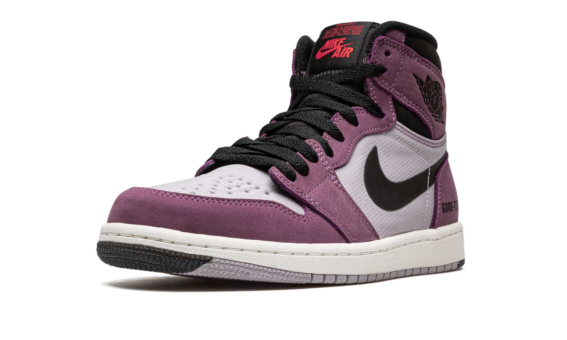 The Air Jordan 1 Element Gore-Tex “Berry” is a colorful look for the modified Jordan 1 with a weatherproof design. The Jordan 1 Element gives the retro basketball shoe a rugged makeover designed to withstand the elements, including harsh weather conditions. A Gore-Tex membrane lines the upper, with overlays on the toe cap, forefoot, and eyelets appearing in Berry-colored leather. The look is contrasted by a lighter purple nylon on the perforated toe and mid-panel. A black reflective Swoosh is found on the sides and a black “Wings” logo appears on the collar. “Gore-Tex” branding is printed on the lateral side of the heel. Release date: March 28, 2022 Gore-Tex Berry